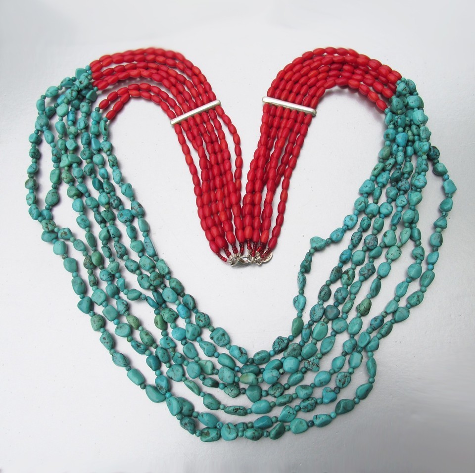 Silver Express Sally C Treasures 7 Strand Coral Turquoise Vtg Necklace