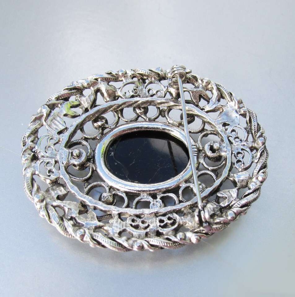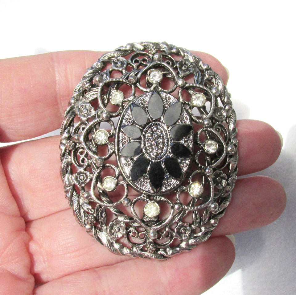 Large Oval Vintage Rhinestone & Black Enamel and 50 similar items