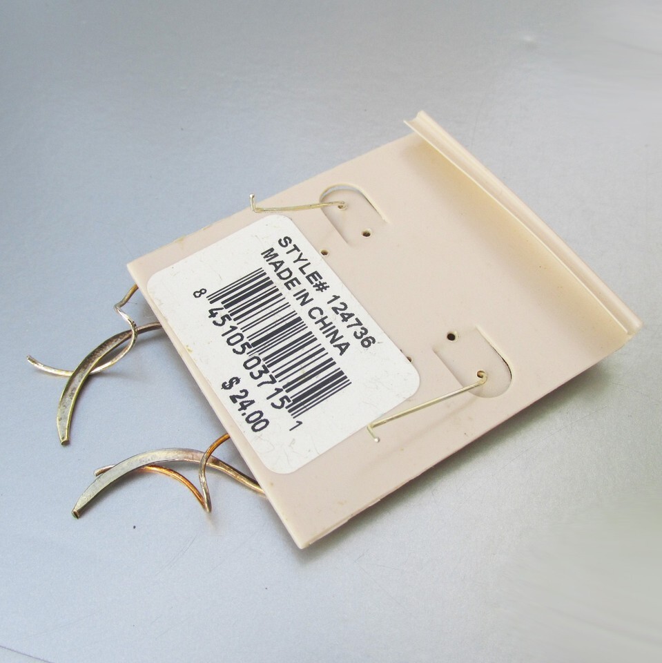 This is a pair of vintage early 2000s dangle pierced earrings still on their Silver Canyon store card. They are 2 1/2" long and have sterling silver ear wires and two twisted copper and gold tone dangling flat wires. They are brand new in perfect condition, never worn. They will arrive gift boxed. 3360