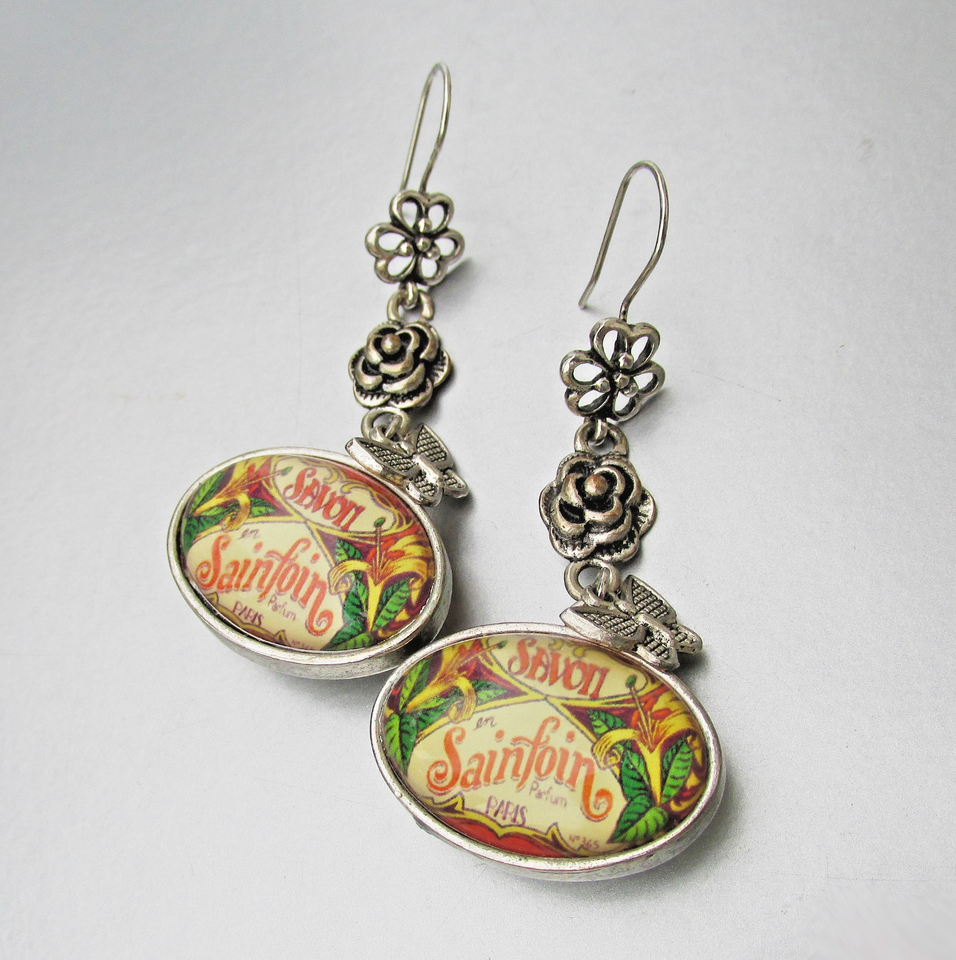 Vintage French Soap Label Long Dangle Flower and 50 similar items