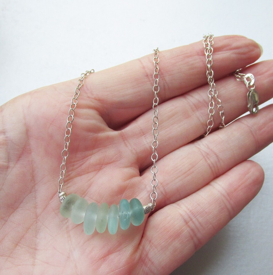 Sterling Silver SEA GLASS Necklace & Large and similar items