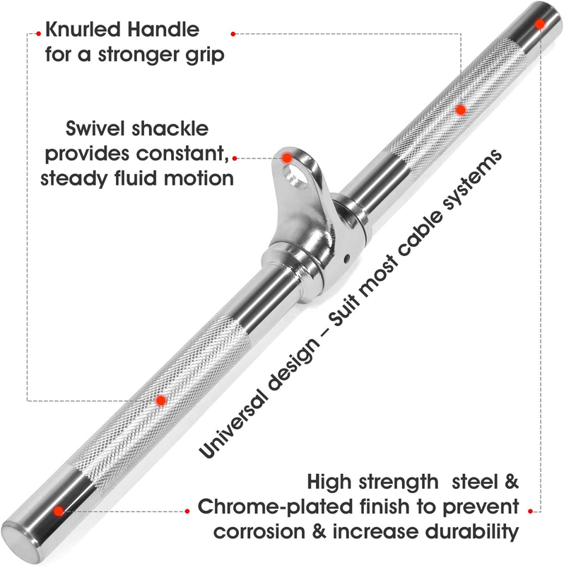 The straight bar features solid steel construction swivel hanger diamond knurled handle to make it function well.