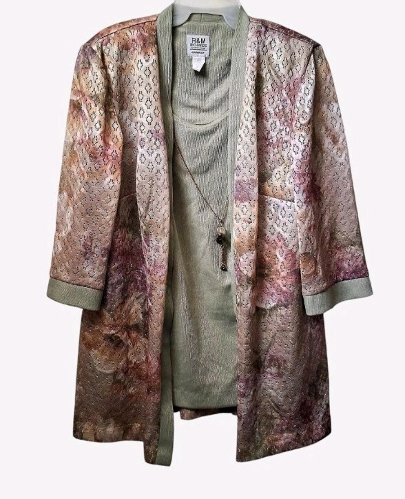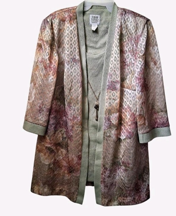 The R M Richards Women's Floral Print Kimono Jacket is a stylish and colorful addition to any woman's wardrobe. Made of polyester, this 3/4 sleeve jacket features a round neckline and a classic fit. The standout feature of this piece is the attached jeweled necklace, which adds an elegant touch to the design. Perfect for the spring season, this multicolor kimono jacket is sure to make a statement and elevate any outfit with its floral pattern and chic style.