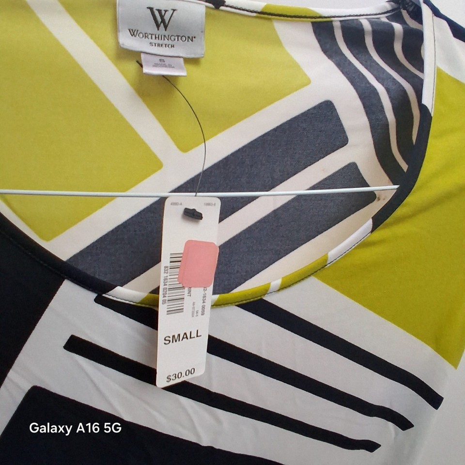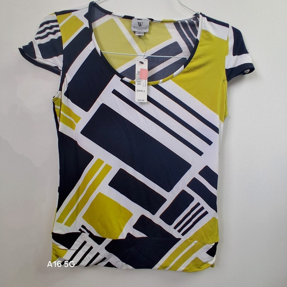 Worthington Stretch Women's Geometric Print Short Sleeve Top Small