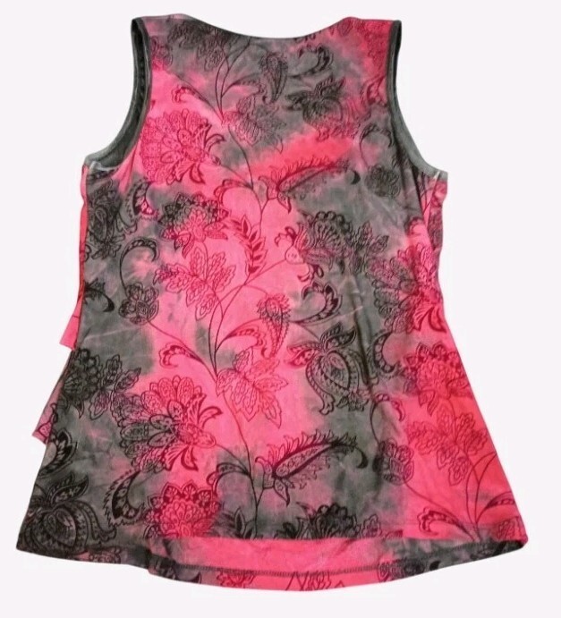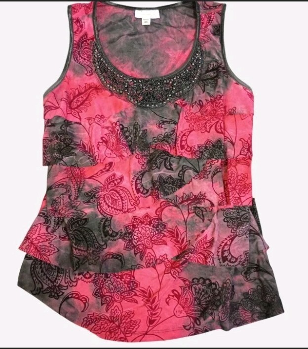 Red And Black Tank Top With Beaded Neckline & Ruffled Layers Petite Size Medium