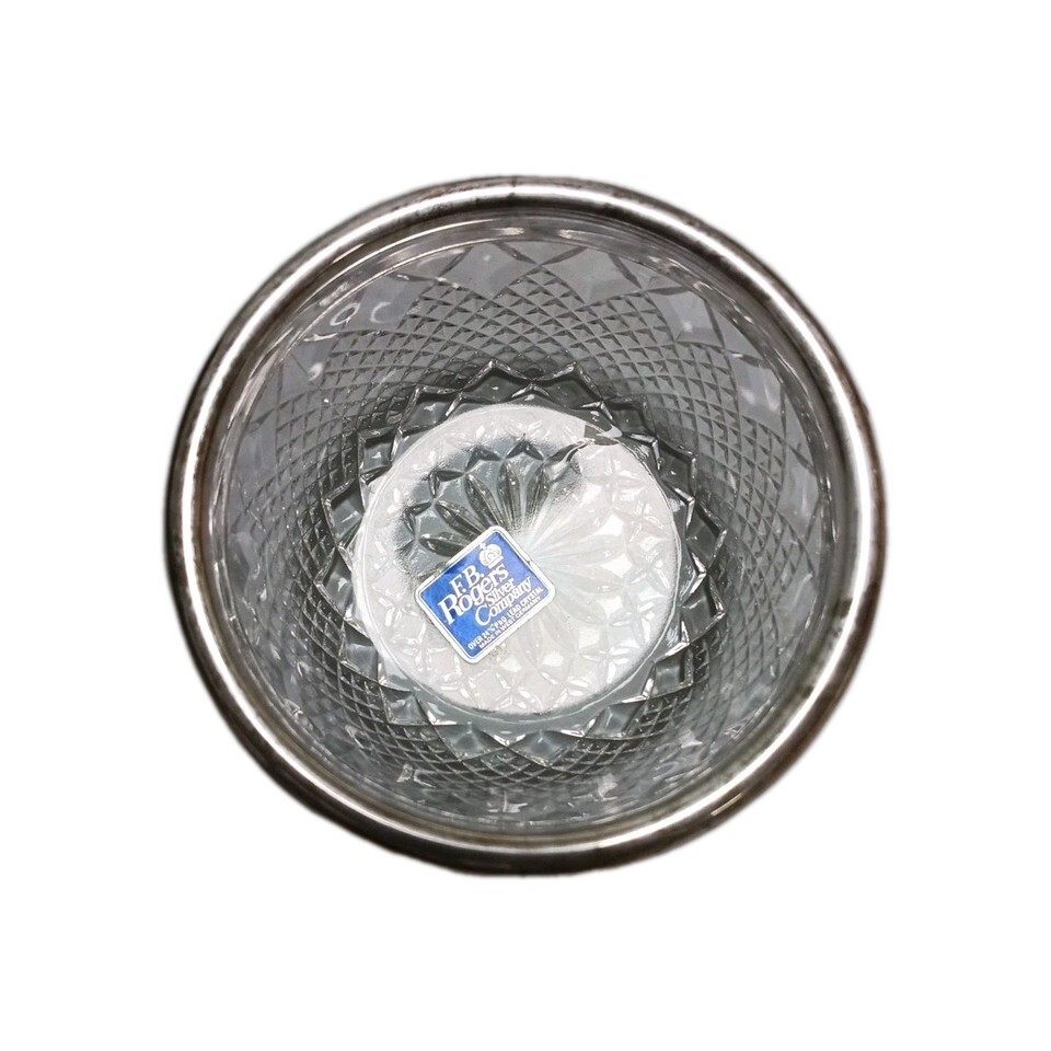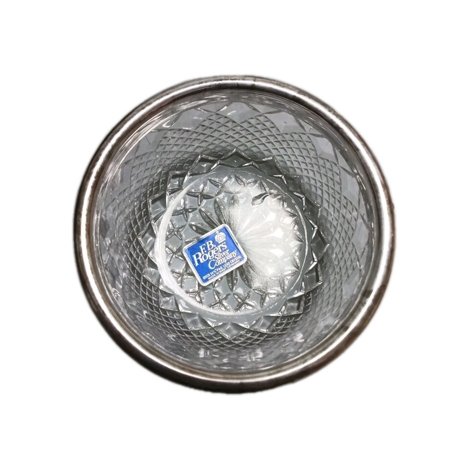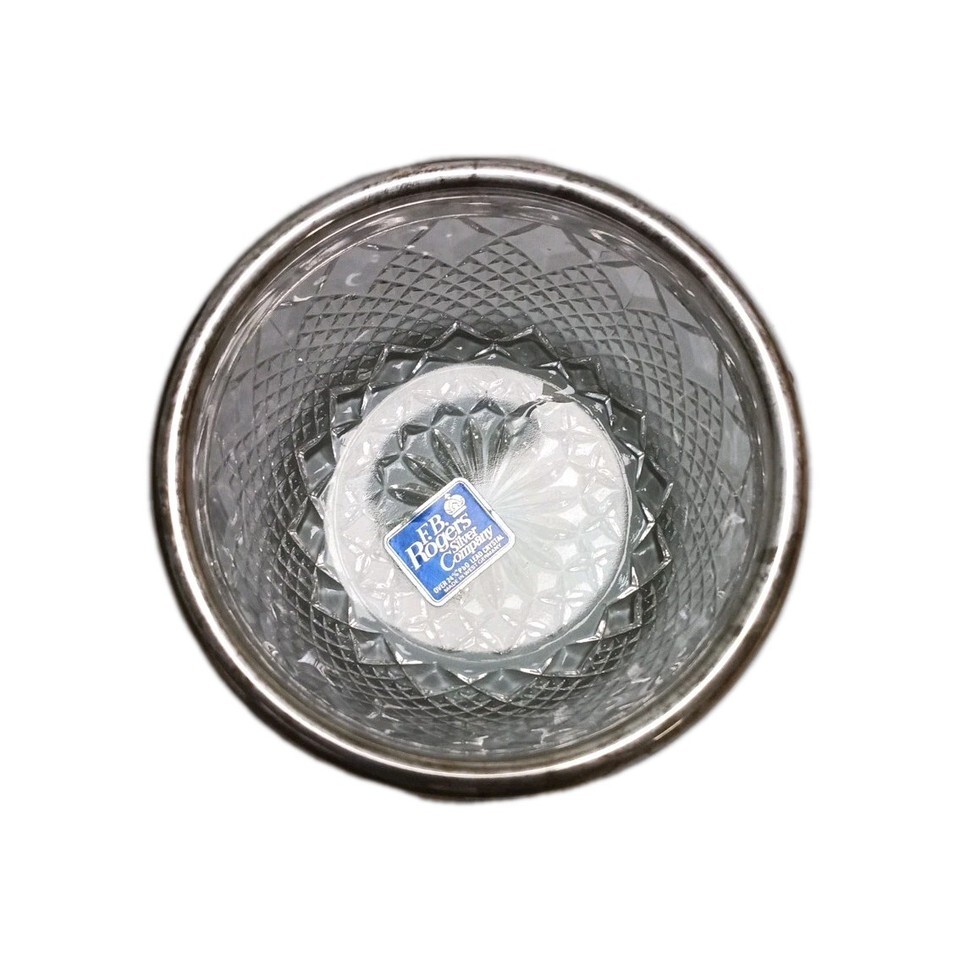 The product is a vintage F.B. Rogers Silver Co. 24% lead crystal bowl with a silver plated rim, made in Germany. The bowl features a blackberry pattern, adding a decorative touch to any table setting. This piece is a fine example of silverplate craftsmanship, showcasing the quality and elegance of the FB Rogers brand. Ideal for collectors or those looking to add a touch of vintage charm to their home decor. Shows signs of age under the silver plating. Noted in photos.