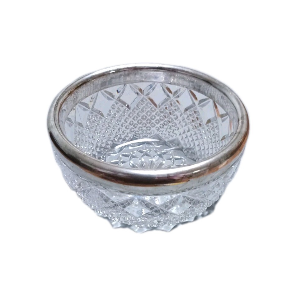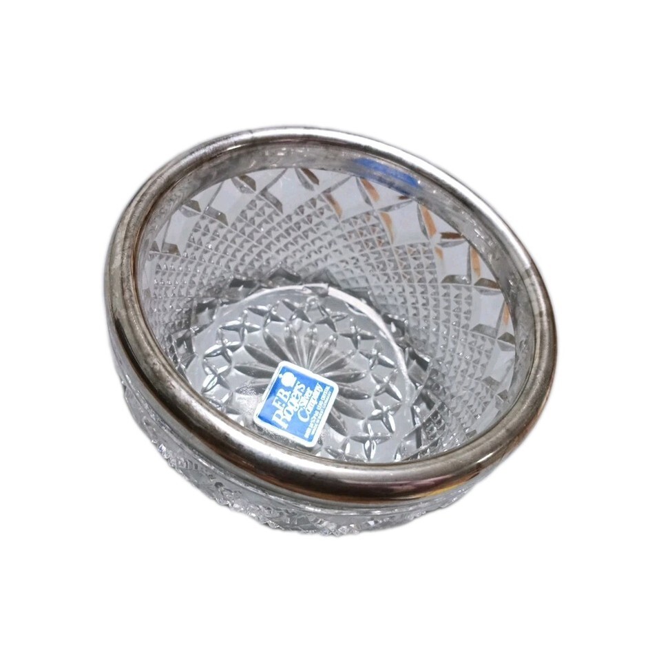 Vintage F.B. Rogers Silver Co. 24% Lead Crystal Bowl Silver Plated Rim. Germany