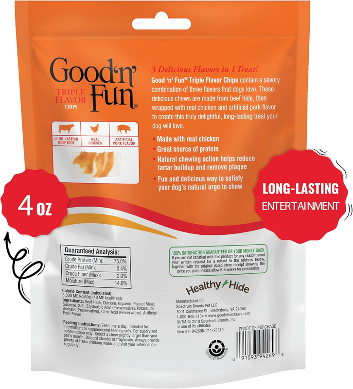 GREAT FOR ALL DOGS: Good ?n? Fun Triple Flavor Chips make a tasty treat suitable for dogs of all sizes and breeds. ??