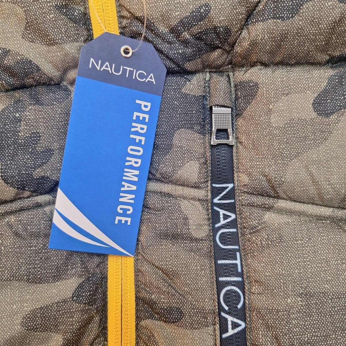 Nautica Poly Hooded Regular Fit Puffer Jacket Mens Sz Medium Green Camo NWT $175