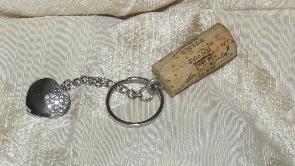 handmade WINE CORK KEY CHAIN w/2 silver and 48 similar items