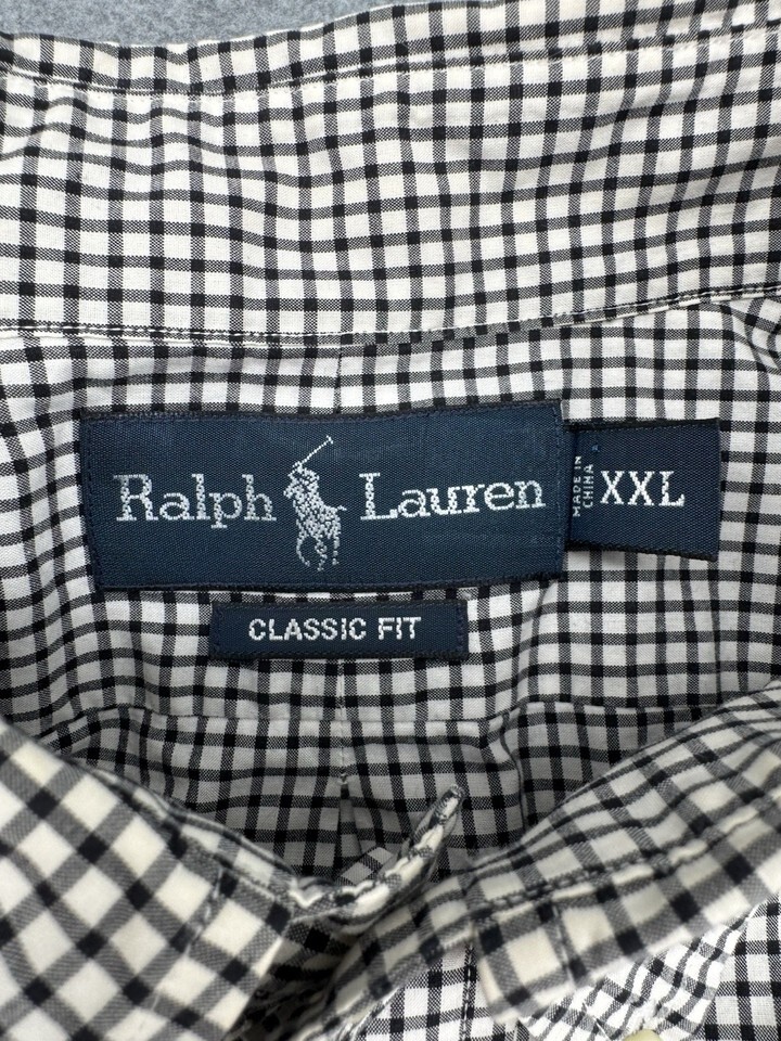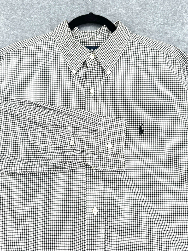 Polo Ralph Lauren Gingham Button Down Shirt Black White Embroidered Pony