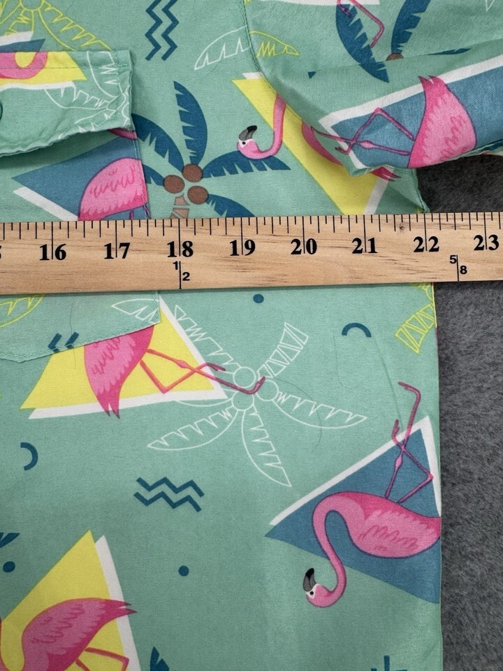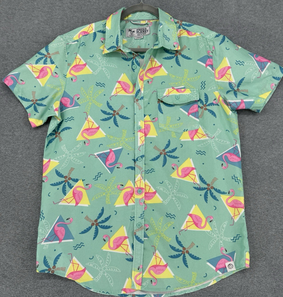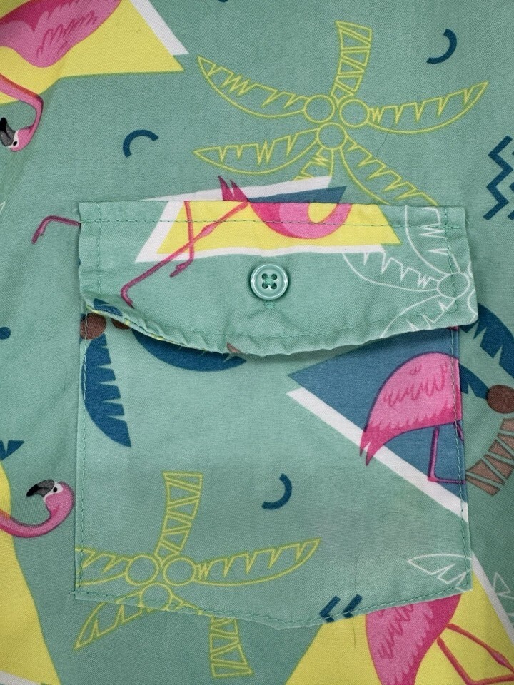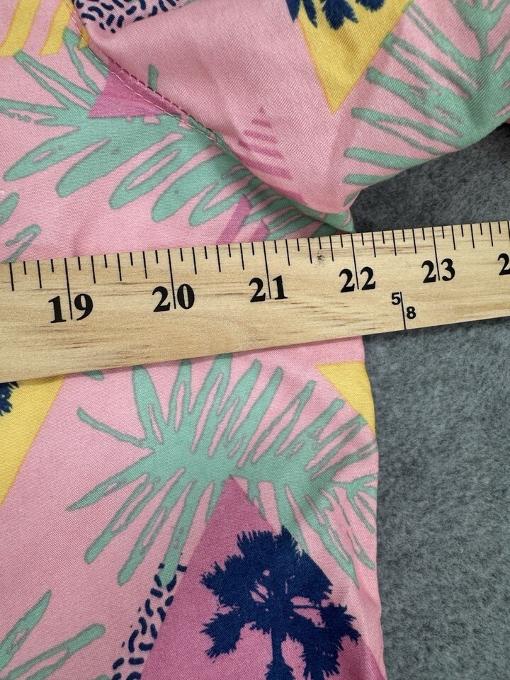 Men’s Hawaiian Shirt Pink Palm Tree Geometric Print Short Sleeve Button Up Large
