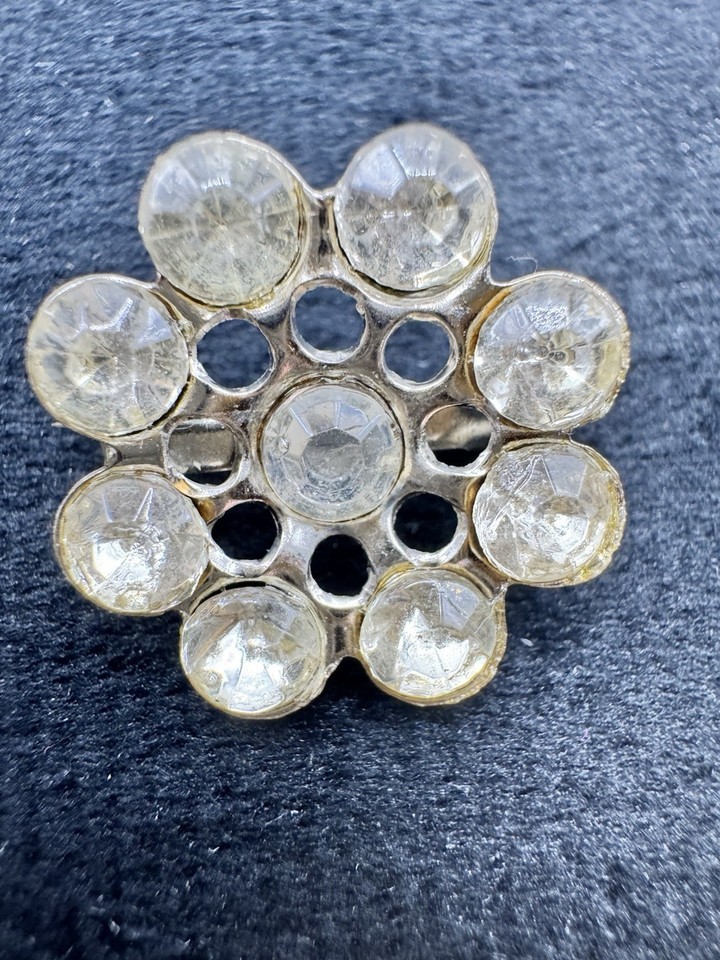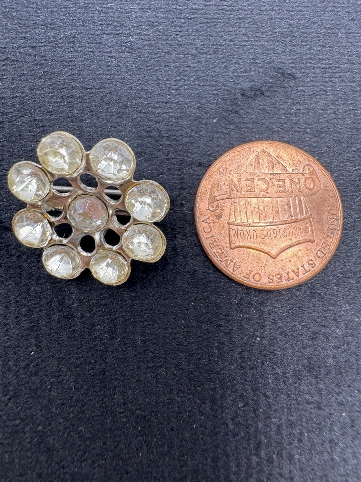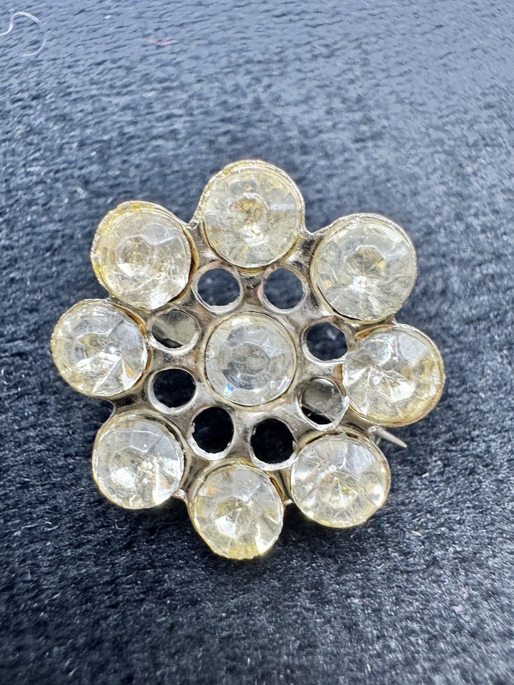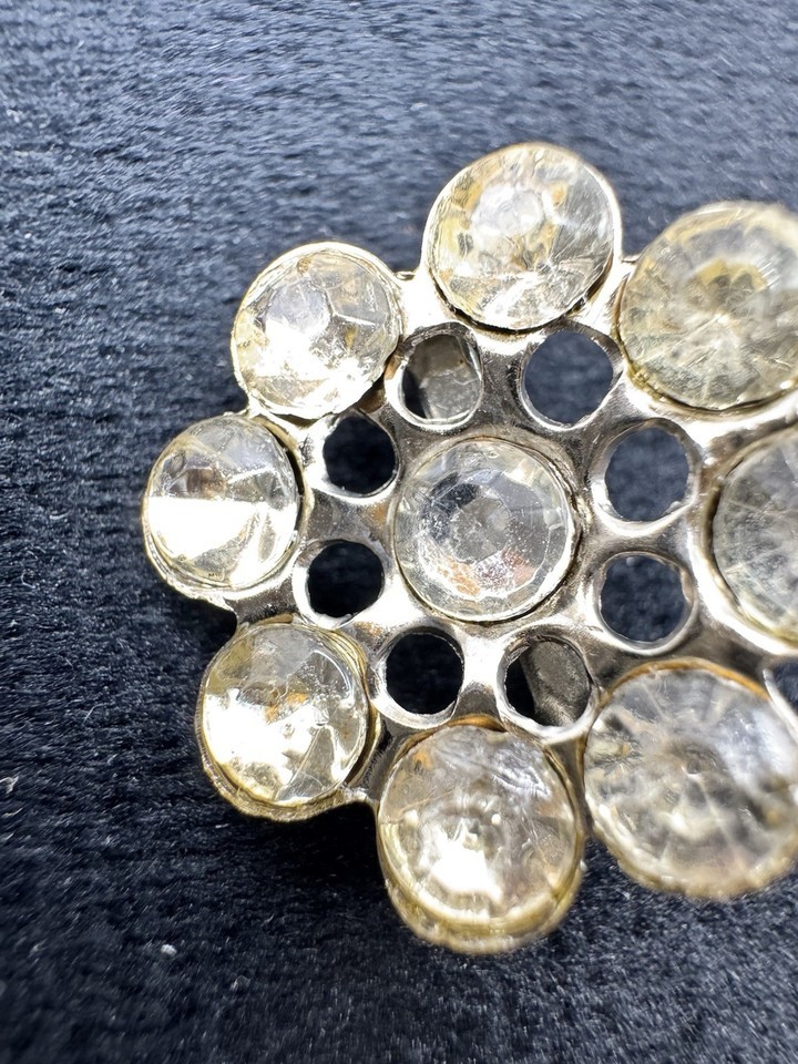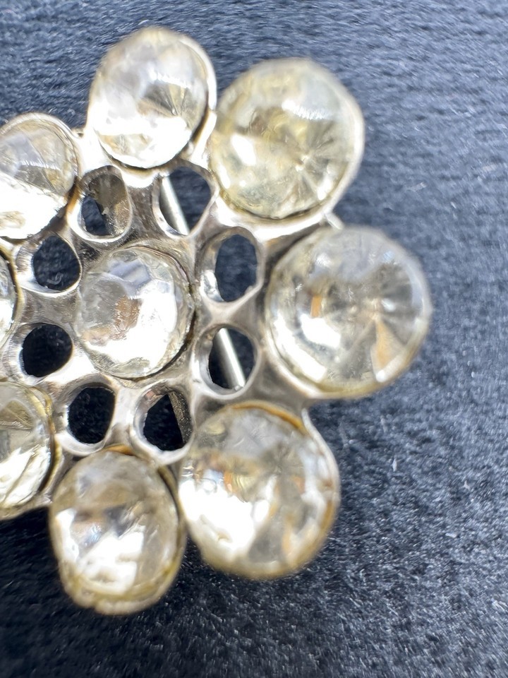 Flower Brooch Clear Rhinestone Silver Tone Round Cluster Pin Vintage