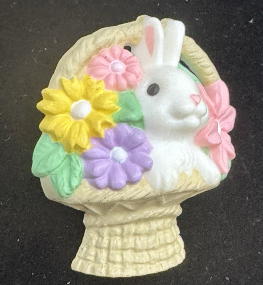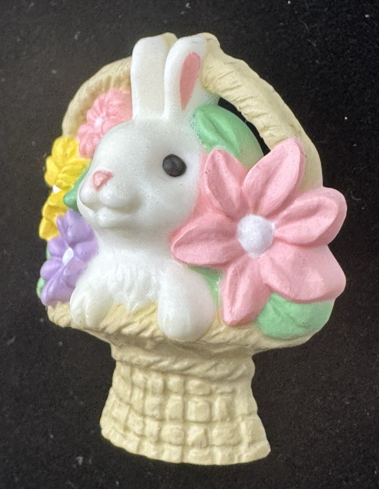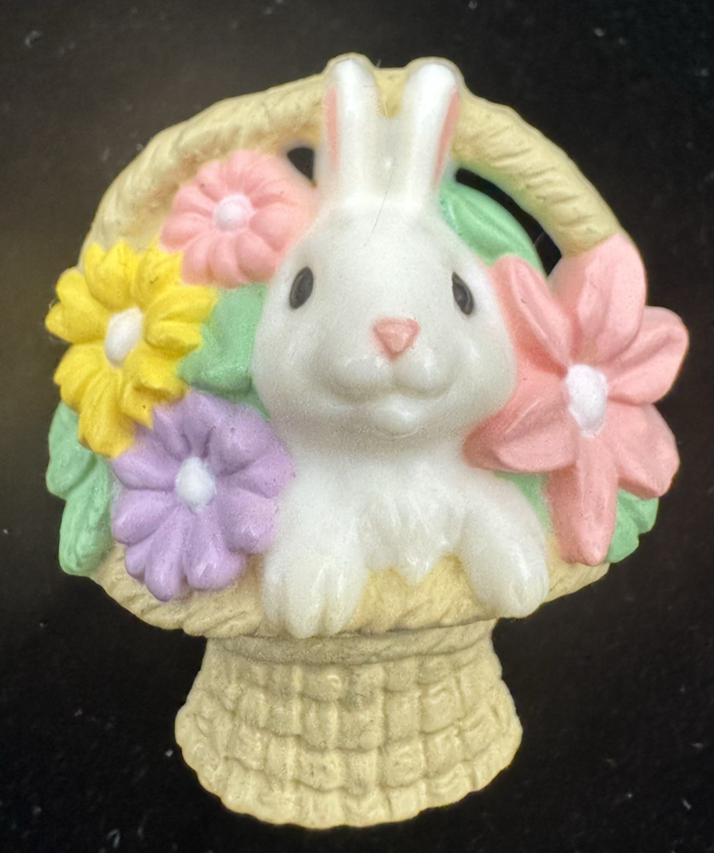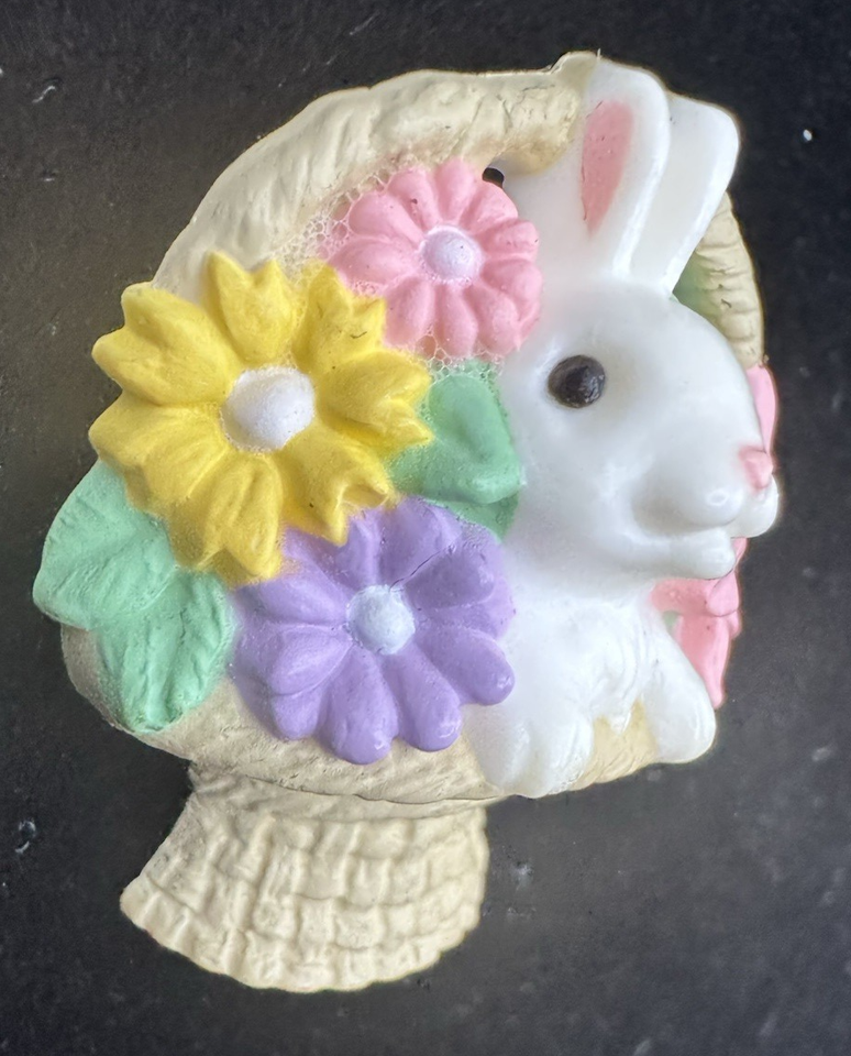 Vintage Hallmark Easter Bunny Basket Brooch Pin 1986 Pastel Flowers Rabbit