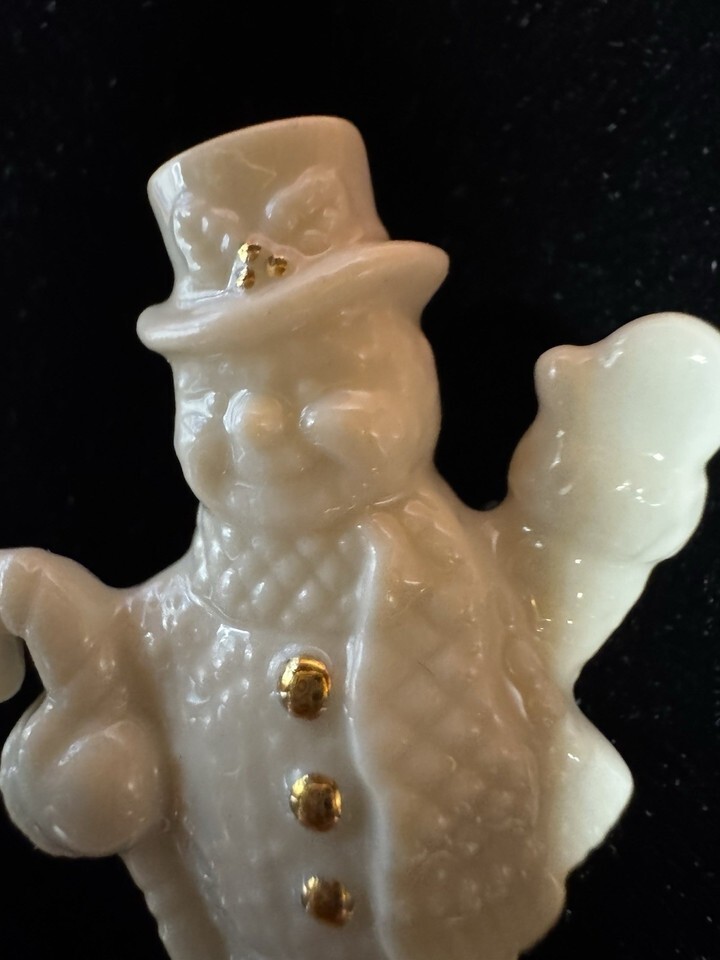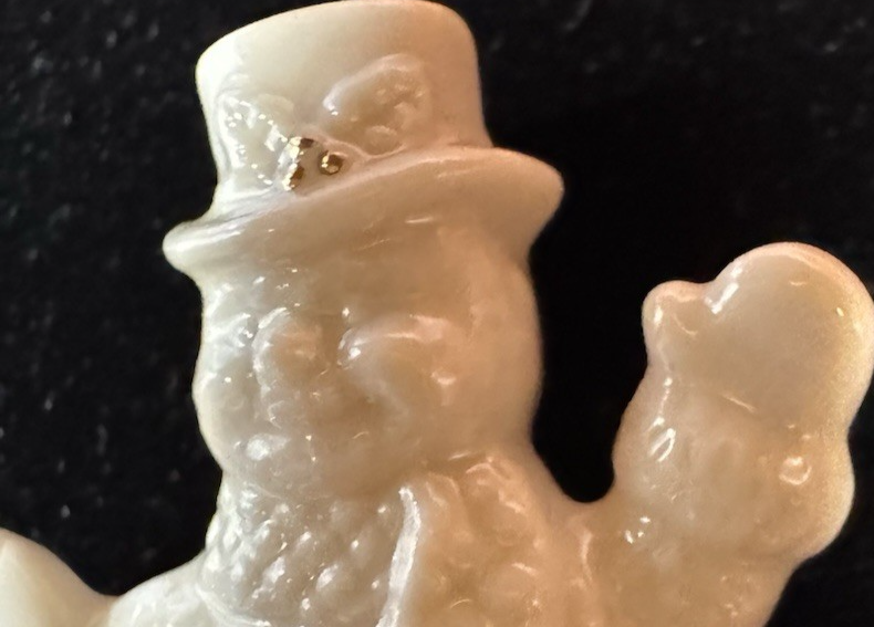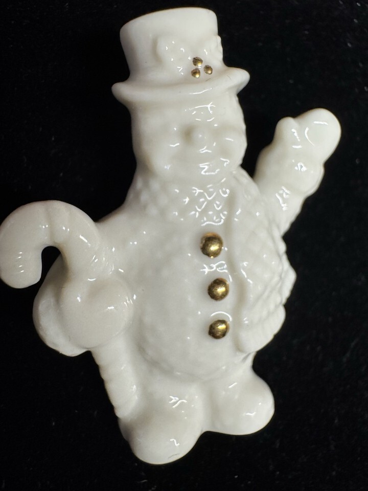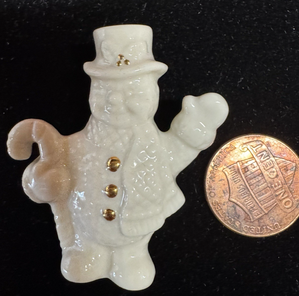 Vintage Porcelain Snowman Brooch Gold Tone Buttons Winter Holiday Lenox