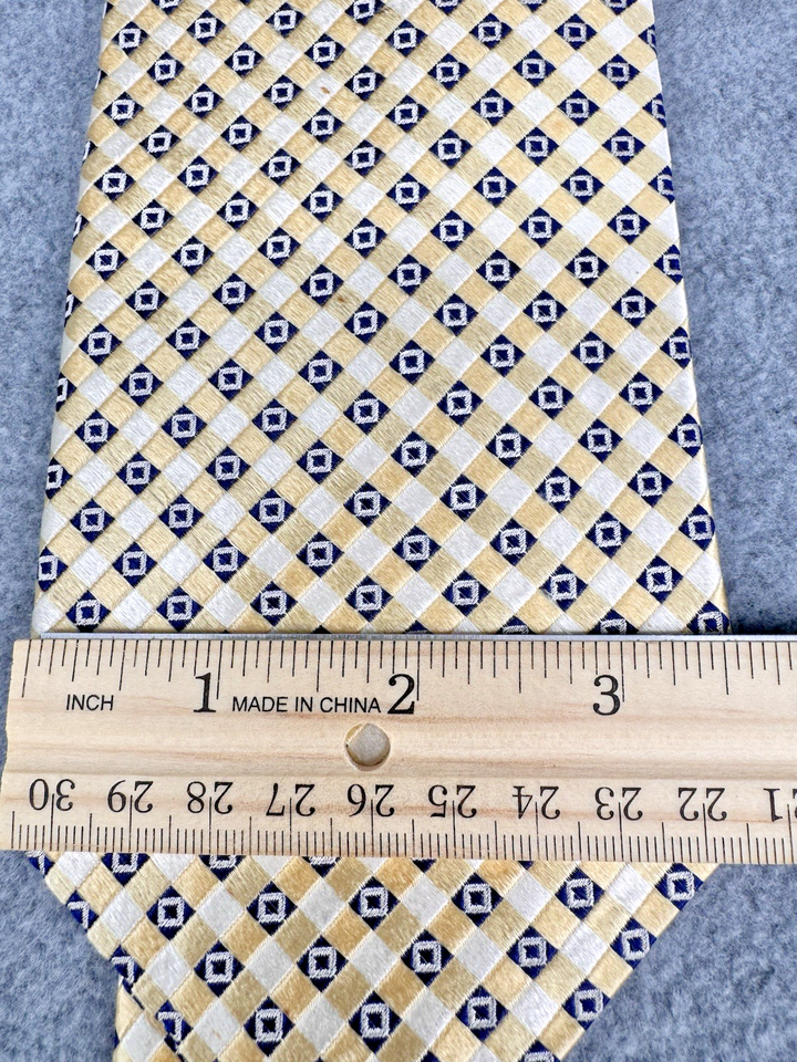 Tommy Hilfiger Necktie Gold Geometric Pattern Men's Silk Neck Tie 56x3.5"