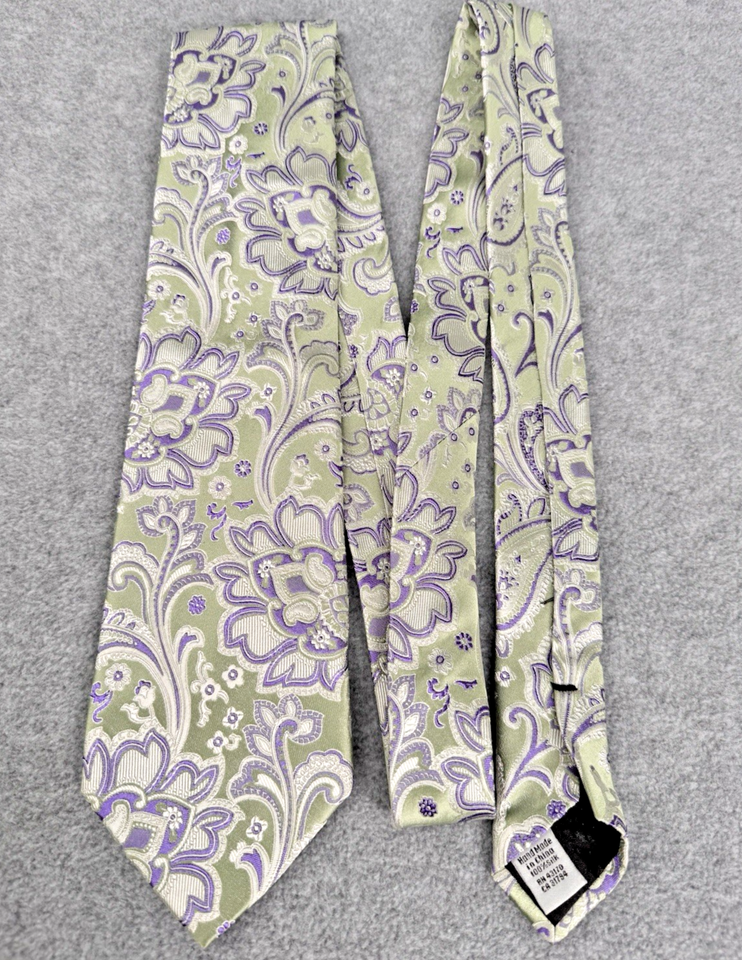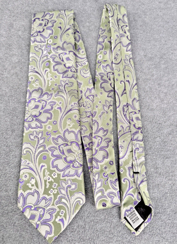 Paisley Silk Tie Green Purple Floral Mens Necktie Geoffrey Beene Designer