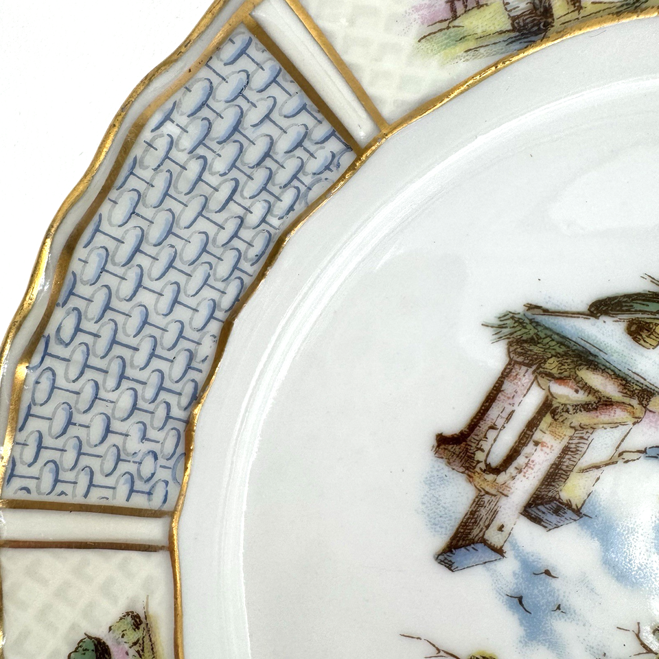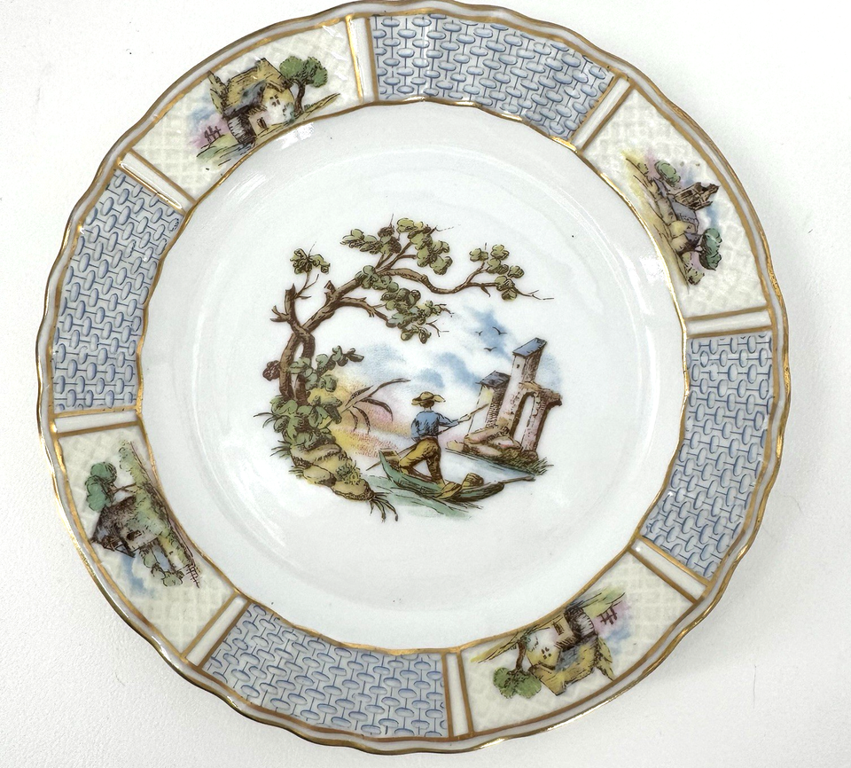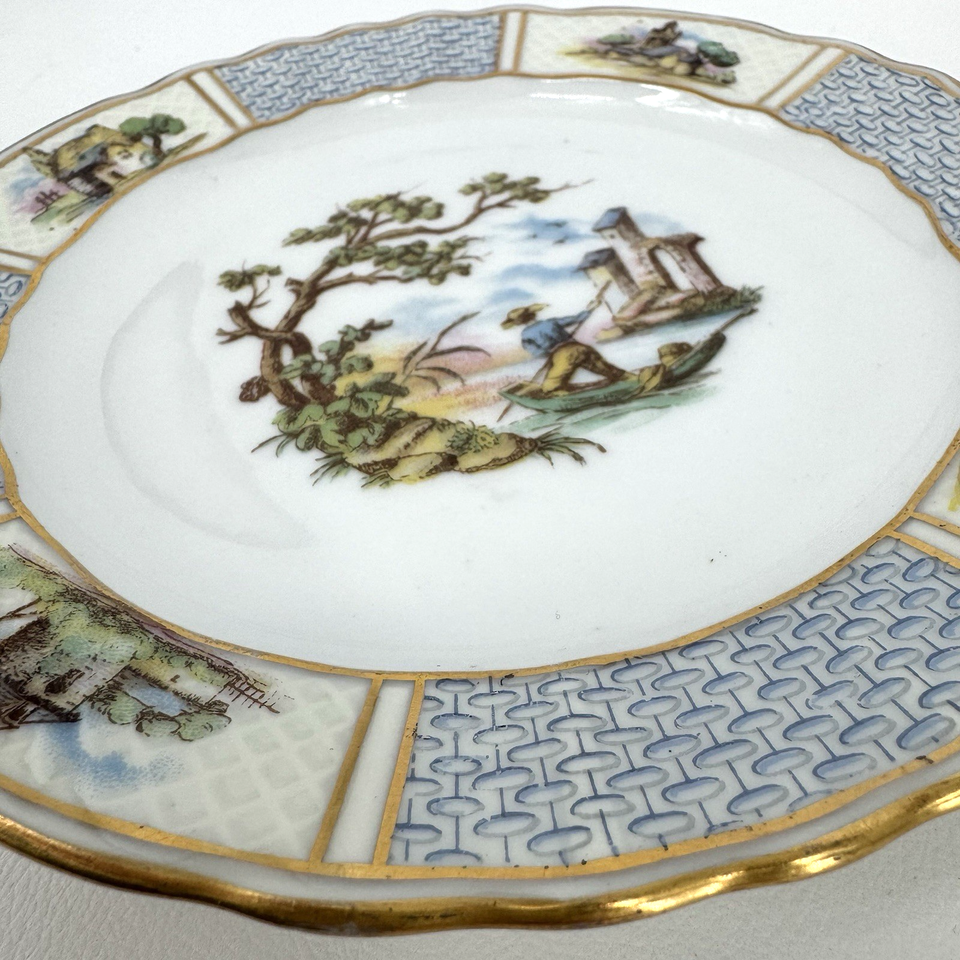 Limoges France B&C Star Mark Scenic Country Cottage Plate Gold Trim Vintage