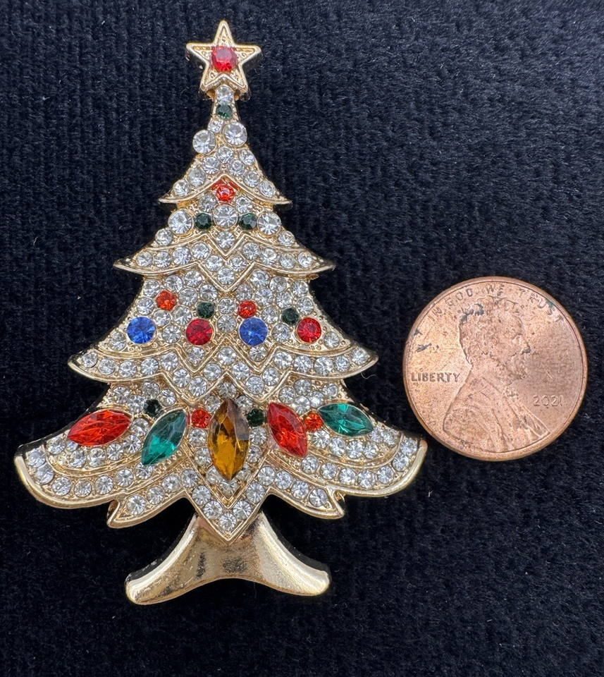 Rhinestone Christmas Tree Brooch Gold Tone and similar items