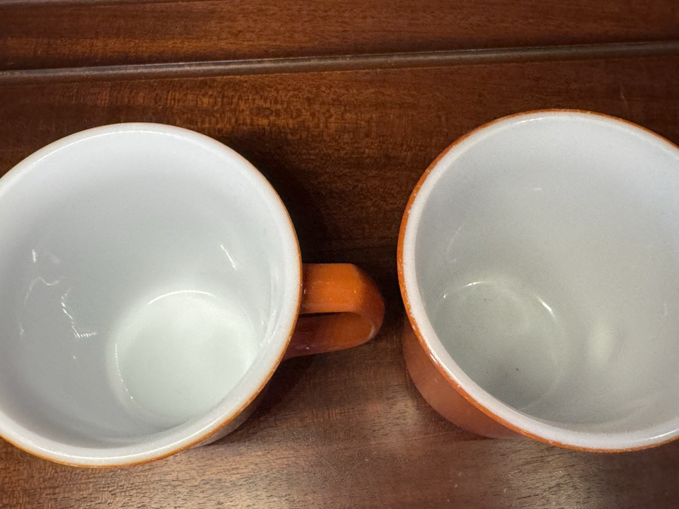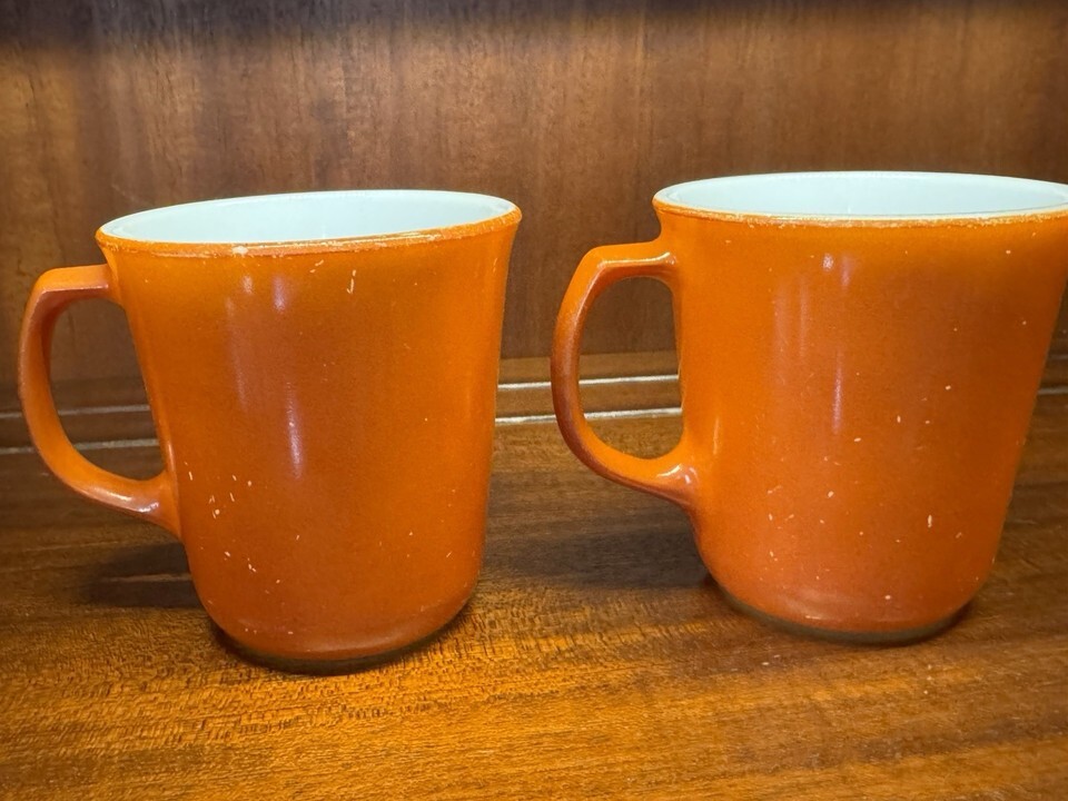 Vintage Pyrex Orange Coffee Mugs Set of 2 Milk Glass USA Retro Mid Century