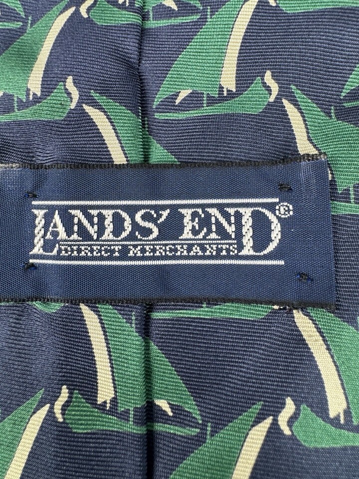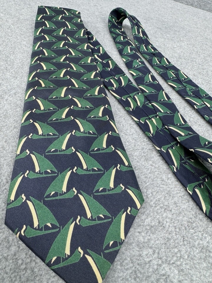 Sailboat Tie Nautical Boat Print Silk Navy Green Mens Necktie