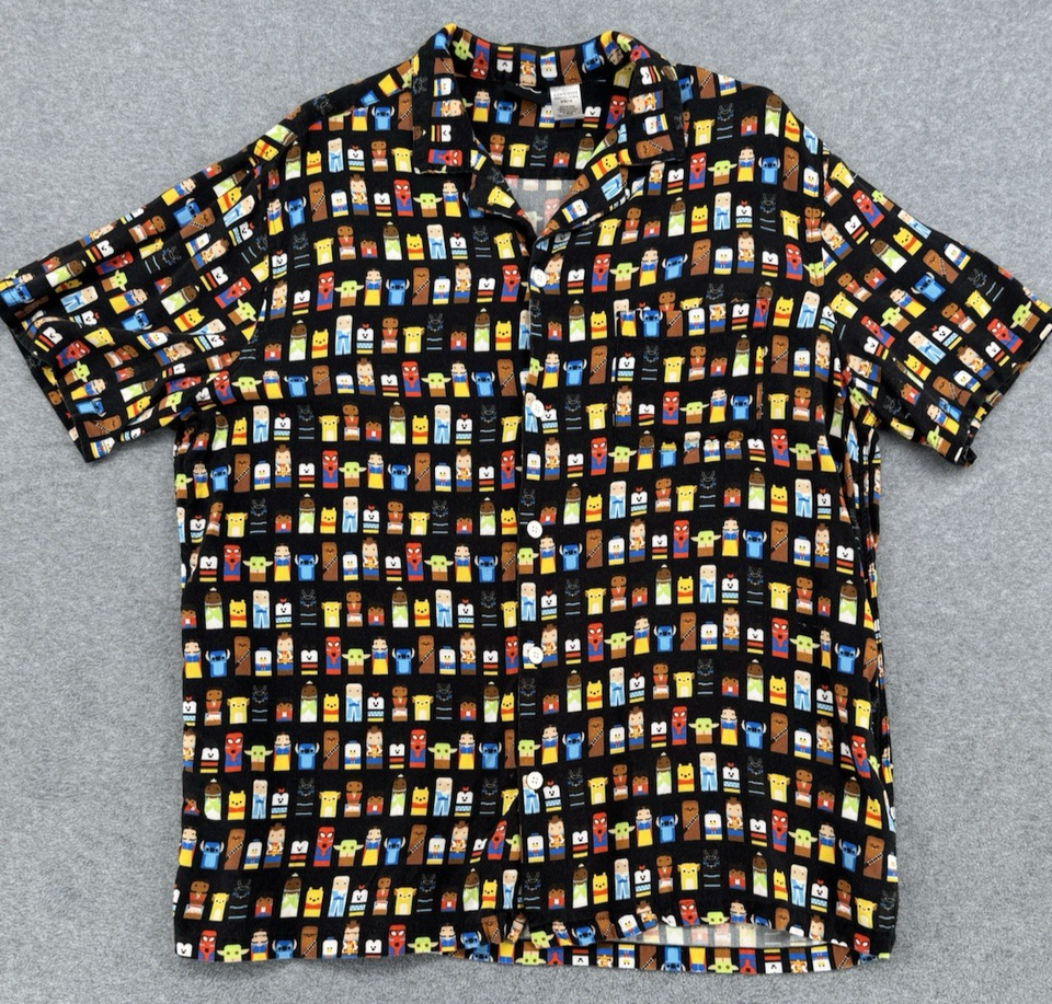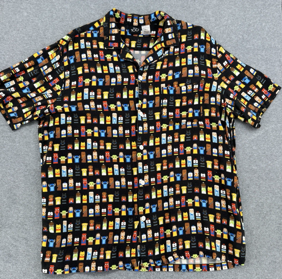 Disney 100 Pop Culture Button Up Shirt Cartoon Character Print Mens