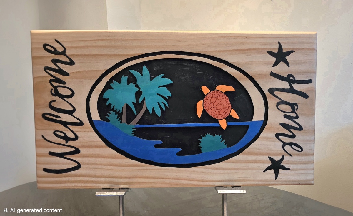 This freehand router-carved wooden sign is a unique piece that displays a beach theme to bring to mind the salt air, sound of the waves and your toes in the sand. Handcrafted with superior attention to detail and a bordered design, this rectangular sign is crafted from clear pine wood with intricate carvings and has hand-painted logo and lettering. Perfect for wall mounting using the provided hanging slot on the back, this sign is a one-of-a-kind addition to your home. Dimensions: 21"wide x 11-1/4"tall x 3/4"deep.