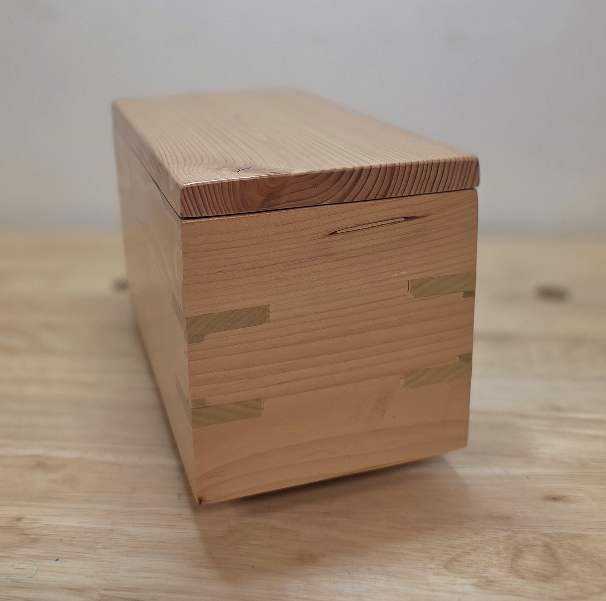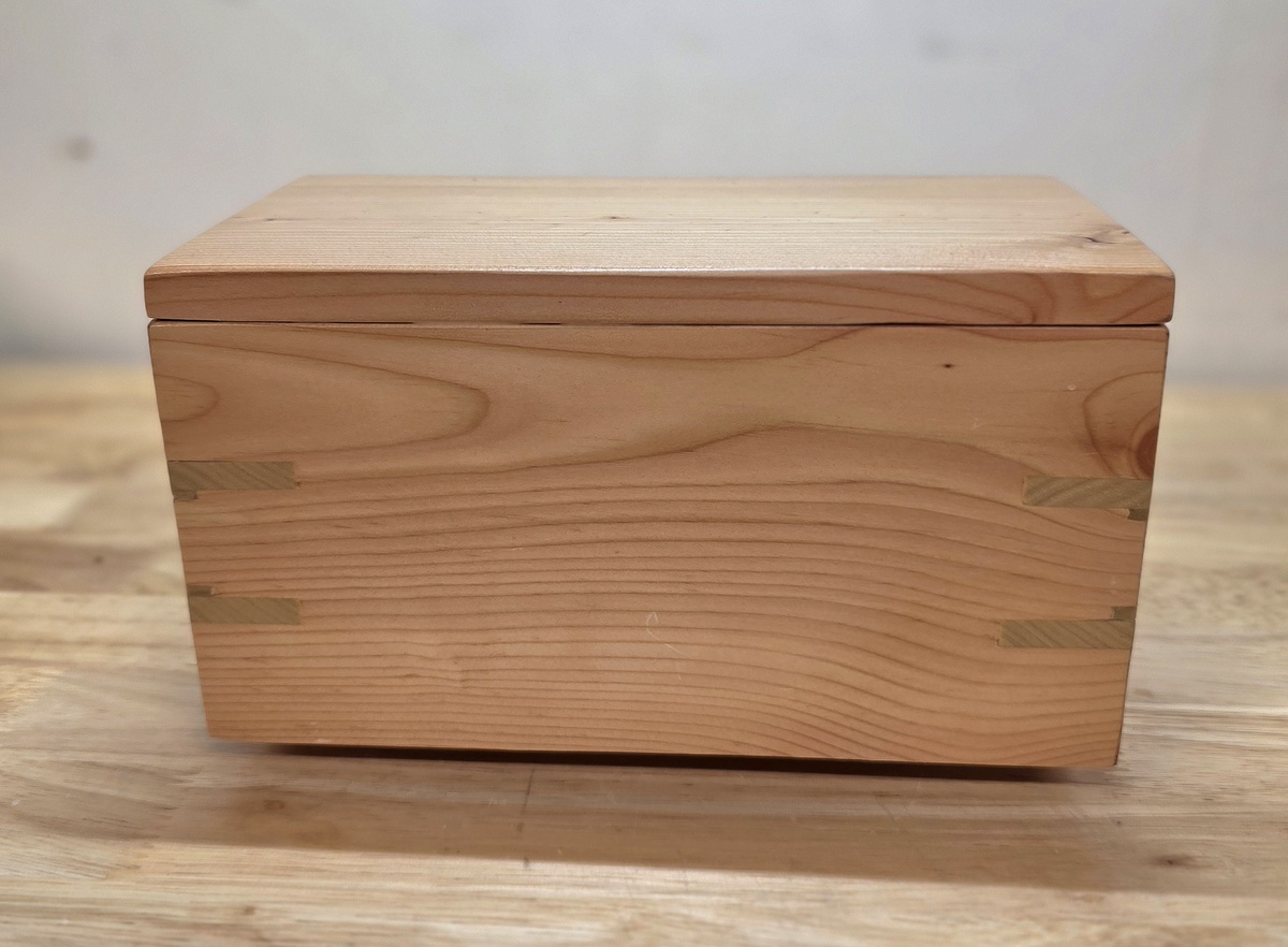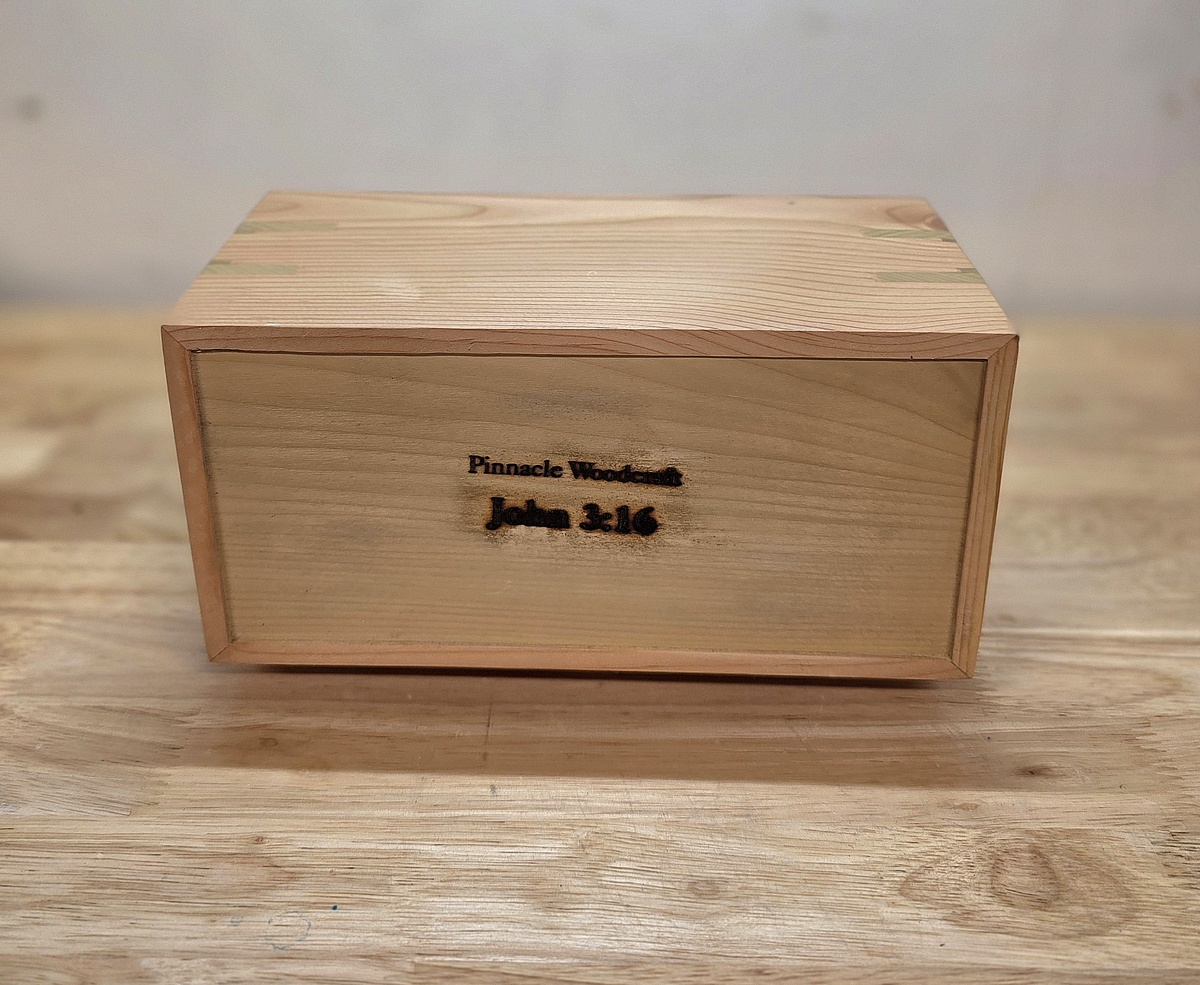 Introducing our limited addition Douglas Fir wooden box, a beautifully handcrafted storage solution that adds a touch of rustic charm to any space. Made from premium Douglas Fir wood, this box features visible poplar wood corner spline accents on its corners for added durability and style. Perfect for organizing small items or displaying trinkets, this box is a must-have for any craft lover. Add a touch of natural elegance to your home with our Douglas Fir wooden box today! Dimensions are 8"wide x 4"deep x 4.5"tall.