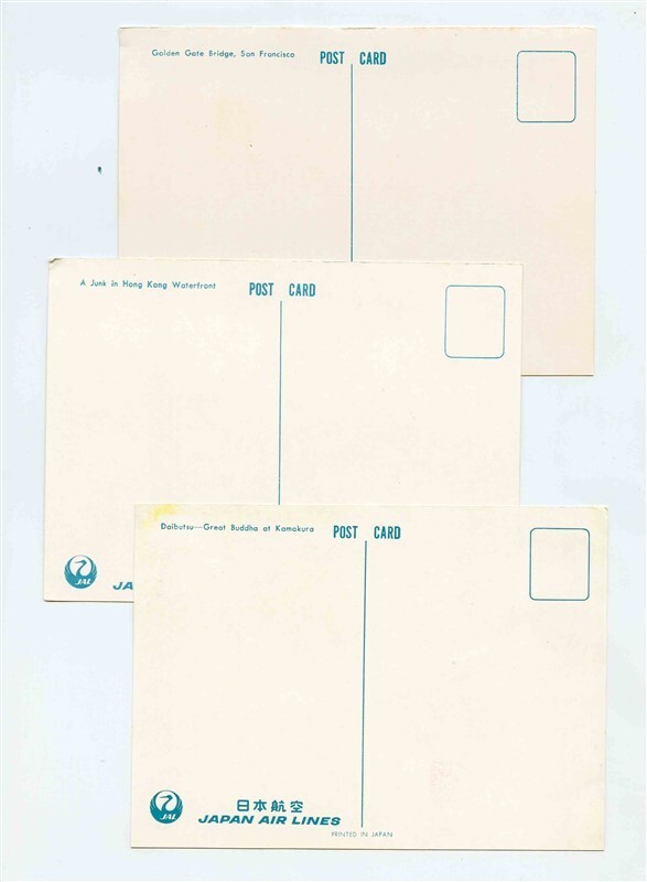 JAL Japan Air Lines Postcards Hong Kong Golden Gate Bridge Great Buddha Kamakura