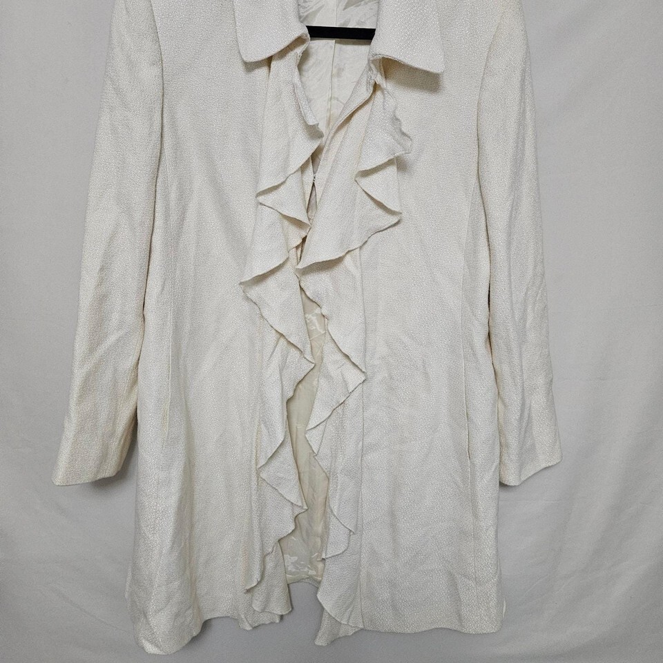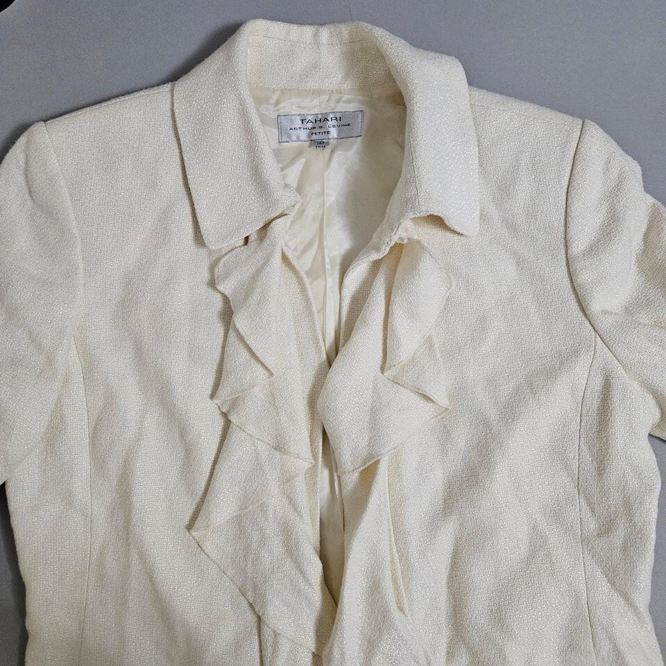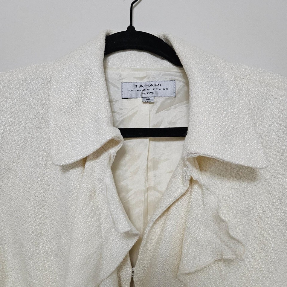 Tahari Arthur S Levine Ivory Ruffle Bouclé Blazer Y2K Petite 14P Office Chic