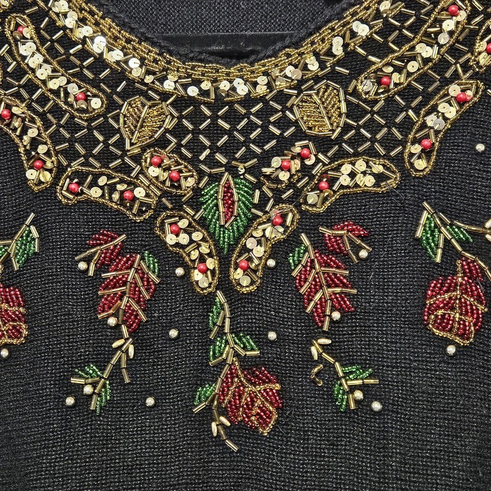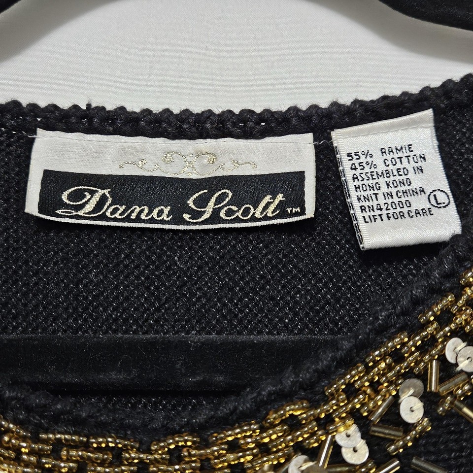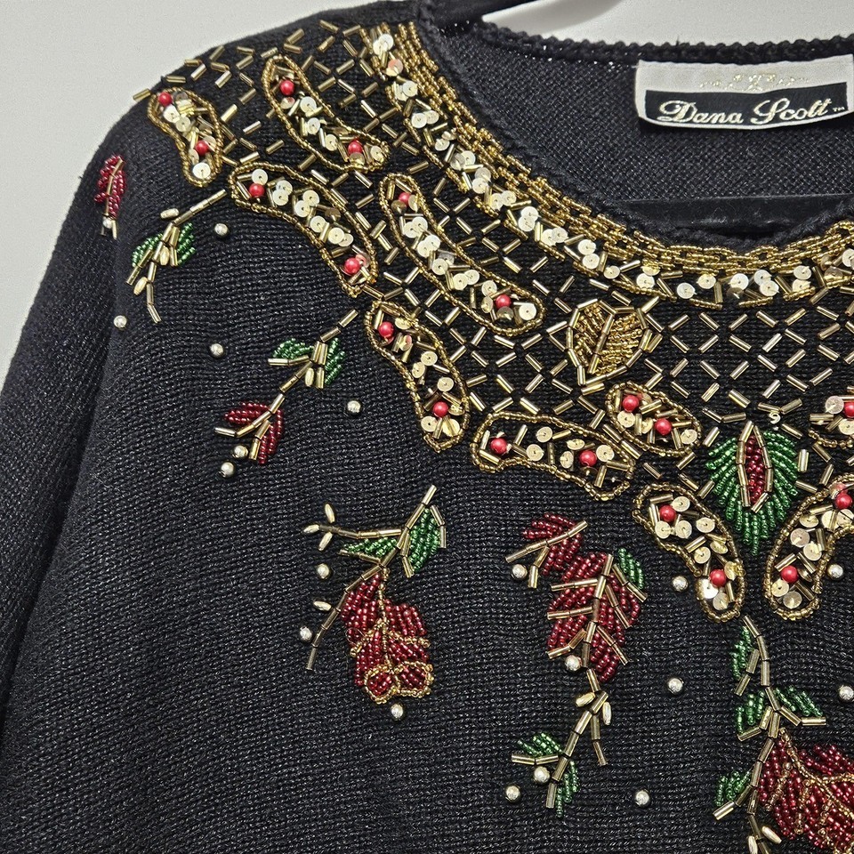Vintage Dana Scott black sweater beaded sequined holiday embellishment large