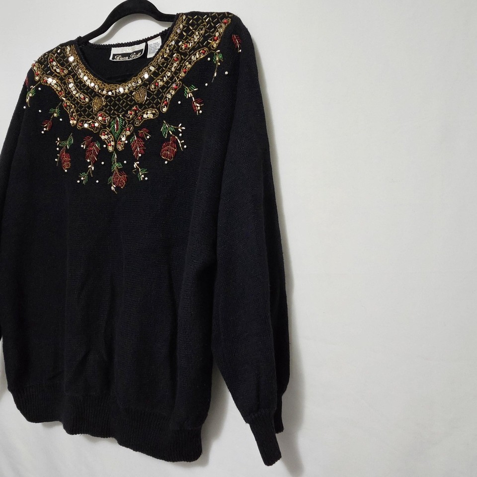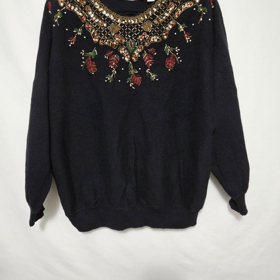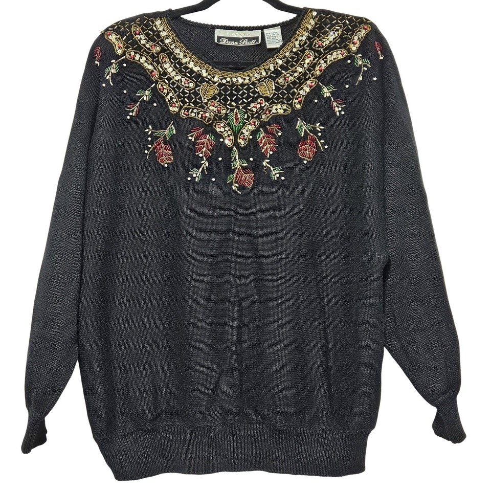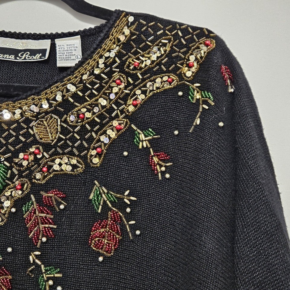 Vintage Dana Scott black sweater beaded sequined holiday embellishment large