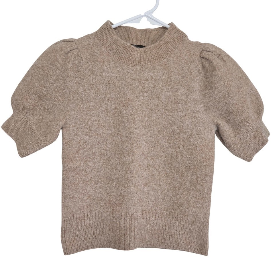 Banana Republic Womens XS Tan Wool Alpaca Blend Puff Sleeve Quiet Luxury