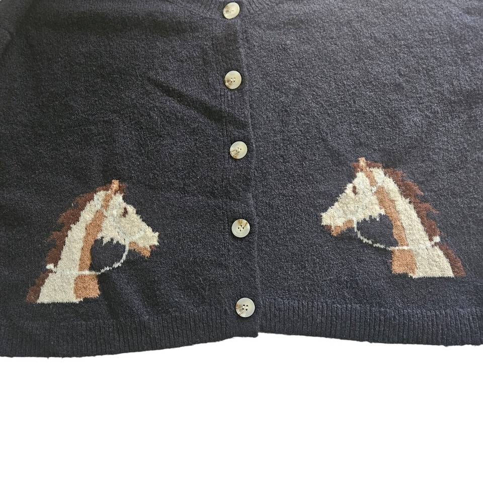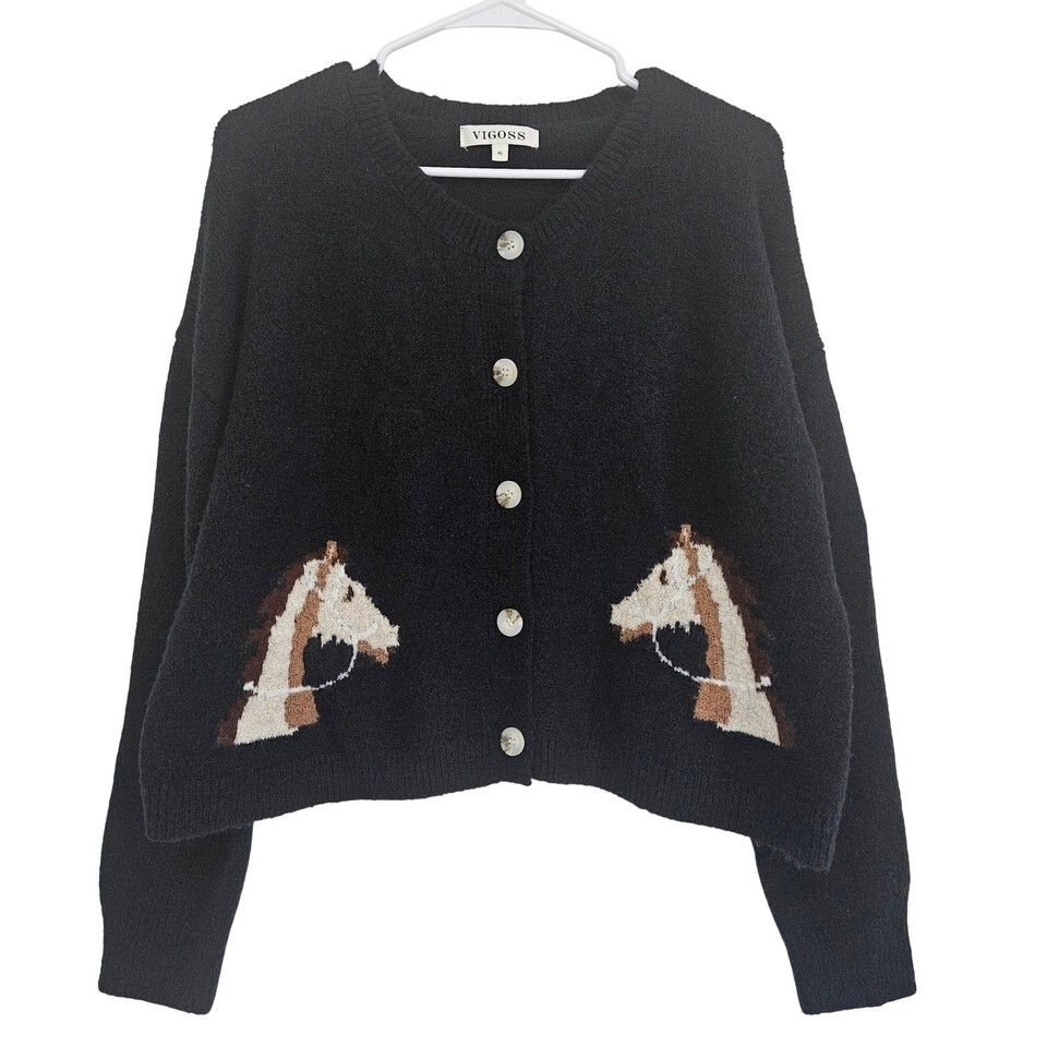 Vigoss Horse Cardigan XL Western Ranch Cowgirl Cozy Knit Cropped Sweater Grandma