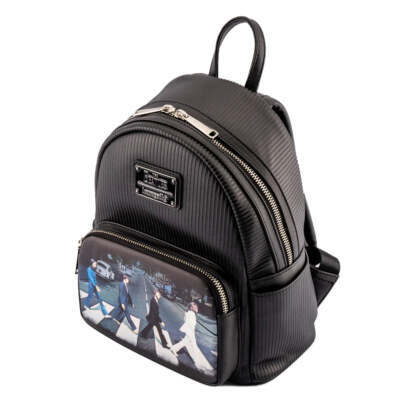 The Loungefly The Beatles Abbey Road Mini Backpack is made of vegan leather (polyurethane). Bag has adjustable shoulder straps, sturdy metal hardware, and features: debossed, and printed details. Take note of the coordinating pattern of the inside lining fabric.