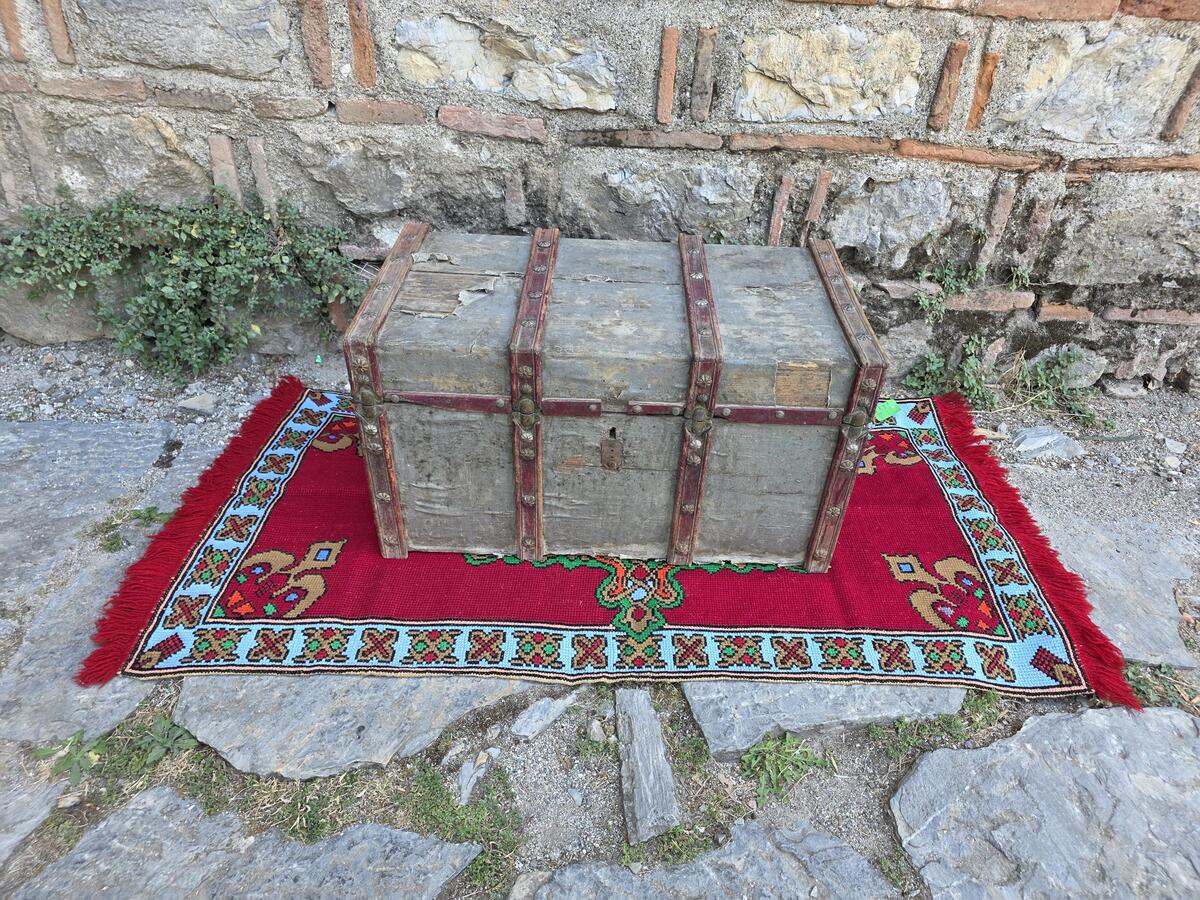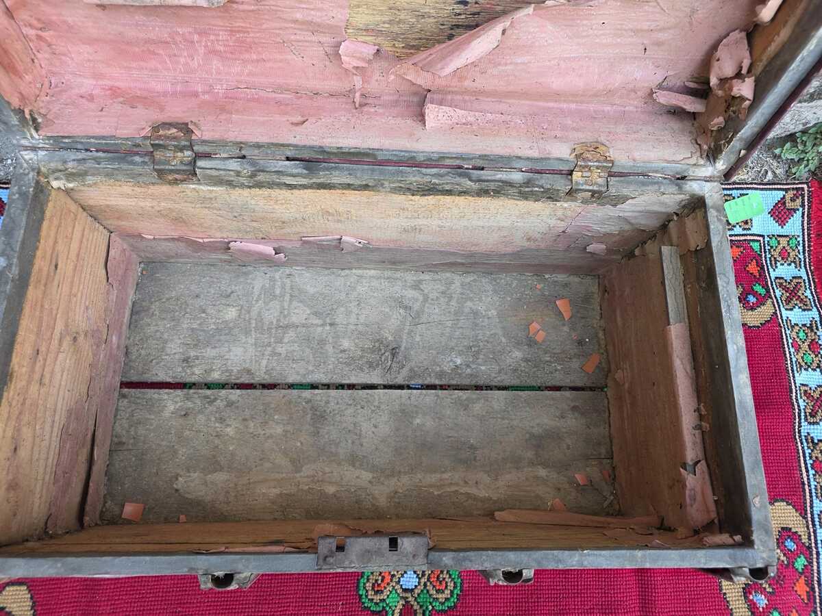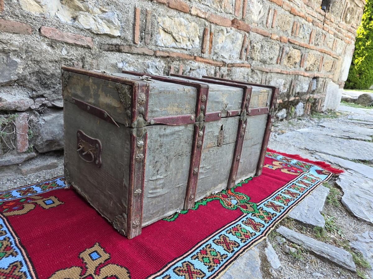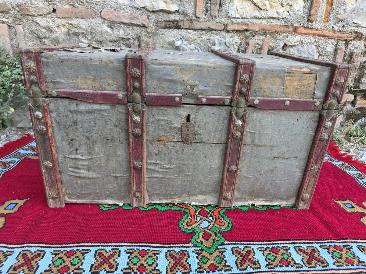 Antique wooden trunk, decorative authentic wooden trunk, early XX century
