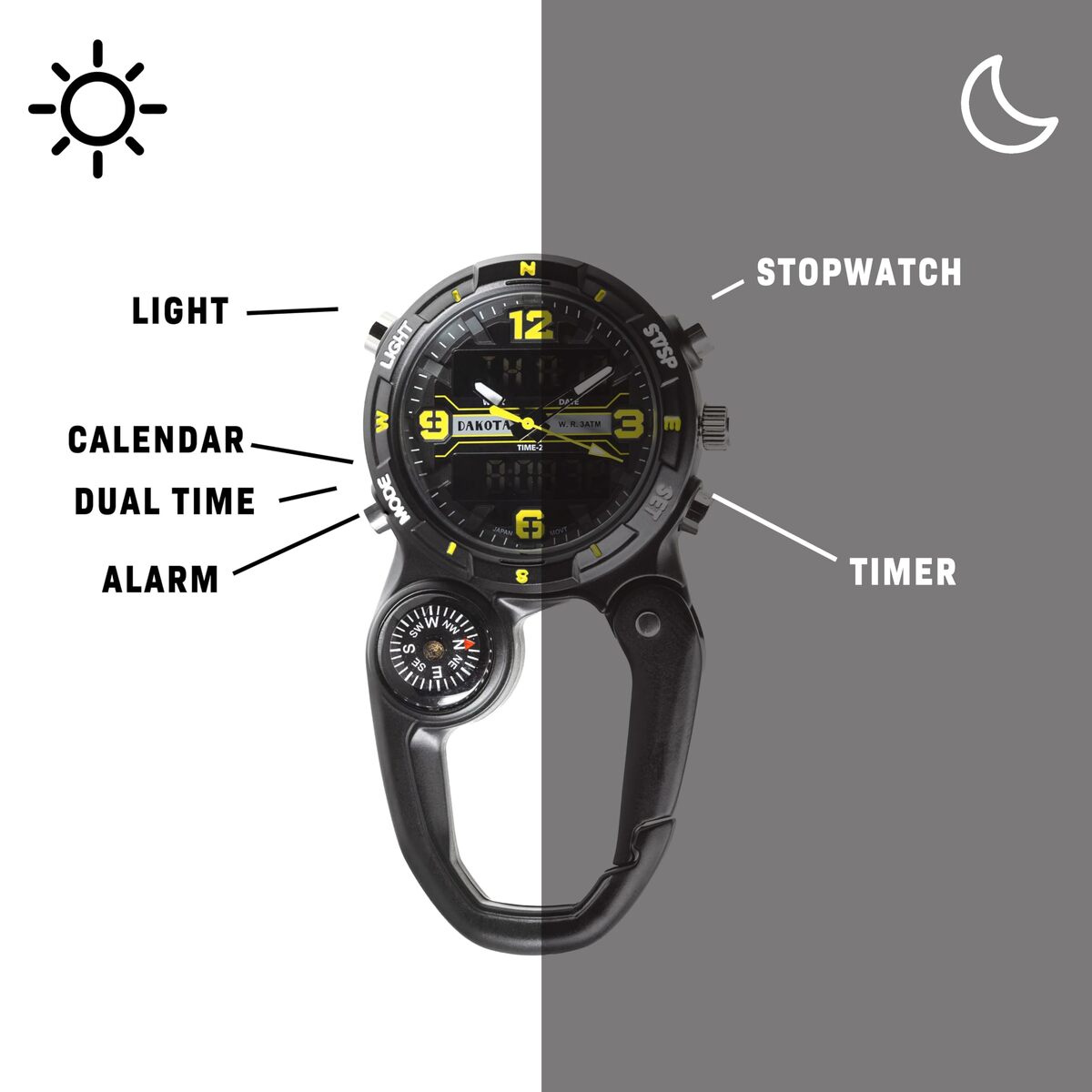 Dakota Digital Clip Watch – Pocket, Alarm, Timer, Dual Time, Outdoor Gifts