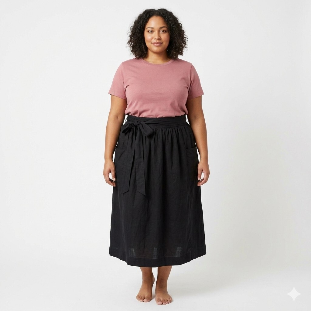 The Old Navy Smocked Midi Skirt in black, size 16W, is a stylish and versatile piece perfect for various occasions such as travel, casual outings, or business meetings. Made from a comfortable blend of linen and cotton, this A-line skirt features a bohemian theme with smocked detailing and convenient pockets. The midi length makes it suitable for the warmer seasons of summer, fall, and spring. Easy to care for with machine washable instructions, this skirt from the brand Old Navy is a must-have for any woman's wardrobe.