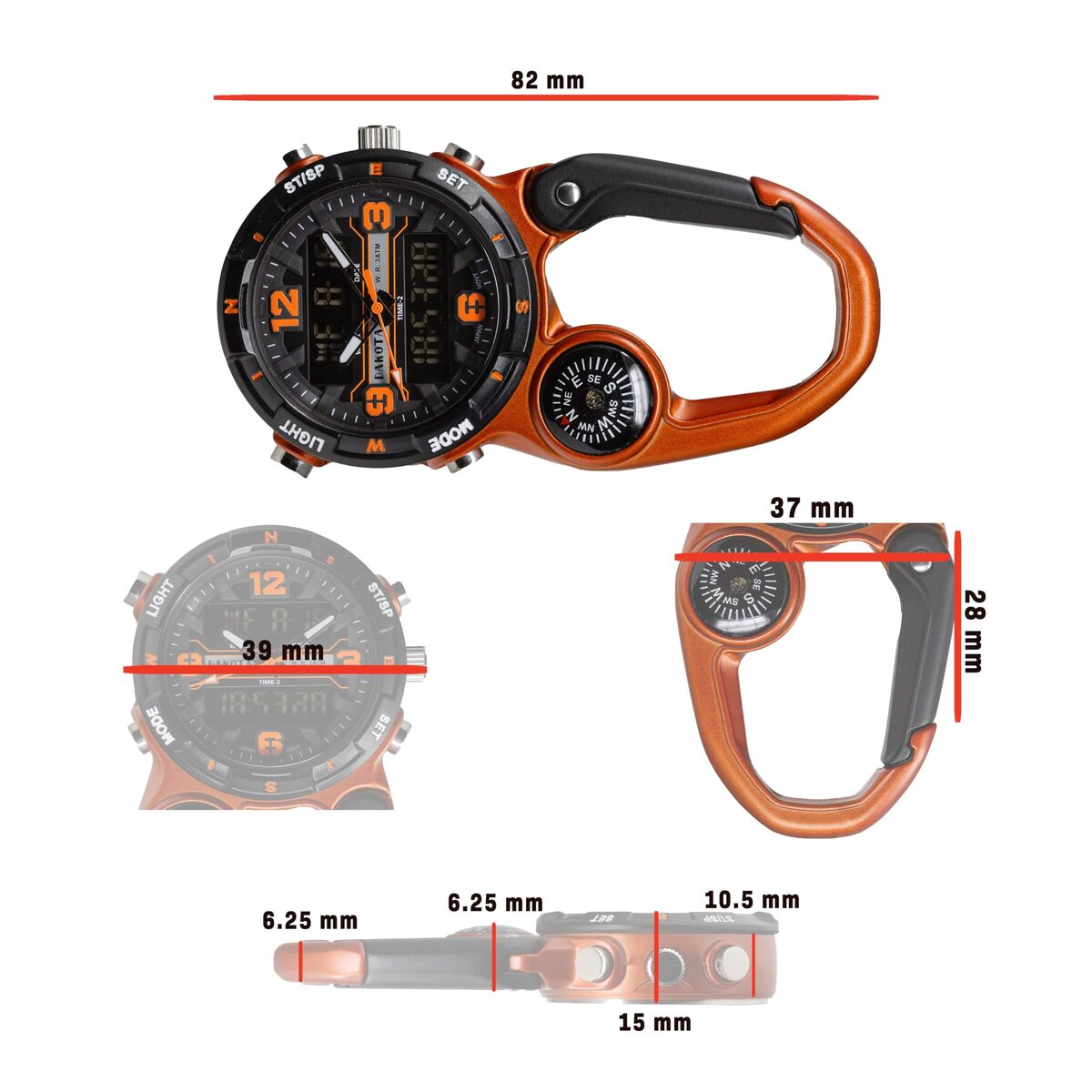 Dakota Digital Clip Watch – Pocket, Alarm, Timer, Dual Time, Outdoor Gifts