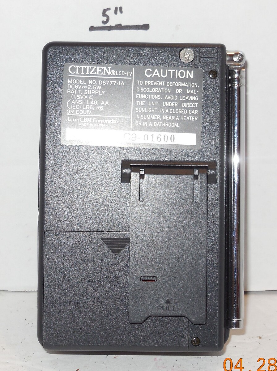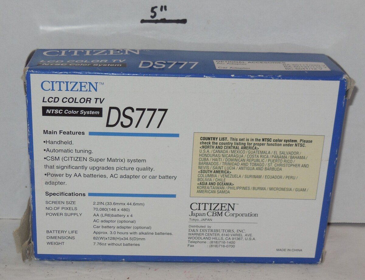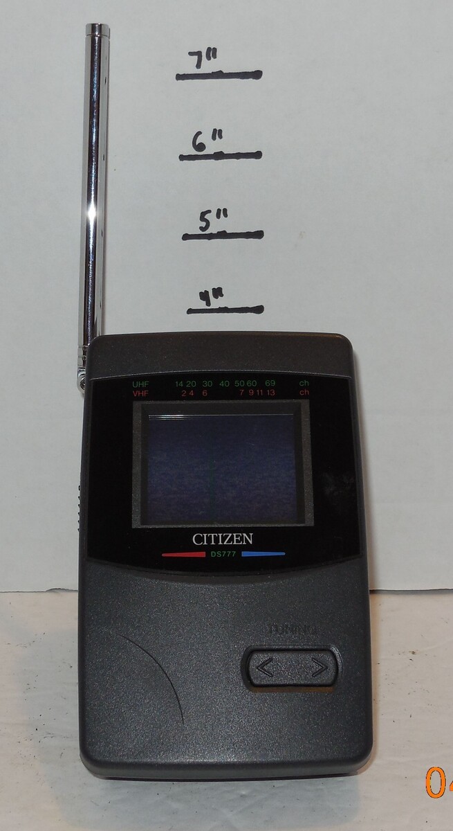 For Sale is a Vintage Citizen DS777-IA LCD Pocket Color TV Television. it in good used condition as seen in the pictures provided what you see is what you will receive. Has been tested powers on but not sure if it works as could not pick up air stations since all air stations are now Digital and these TV's will no longer pick up air stations please keep this in mind prior to purchasing consider this as collectible purposes only and not be able to be used as intended . Please ask Any and All Questions prior to purchasing. Fast Same or Next day shipping with Free Delivery Confirmation within the U.S. Payment Due within 7 days of purchase (if you need more time please let us know In advance) we love to combine shipping is always a Yes and Most of the time Additional Items Ship for free.