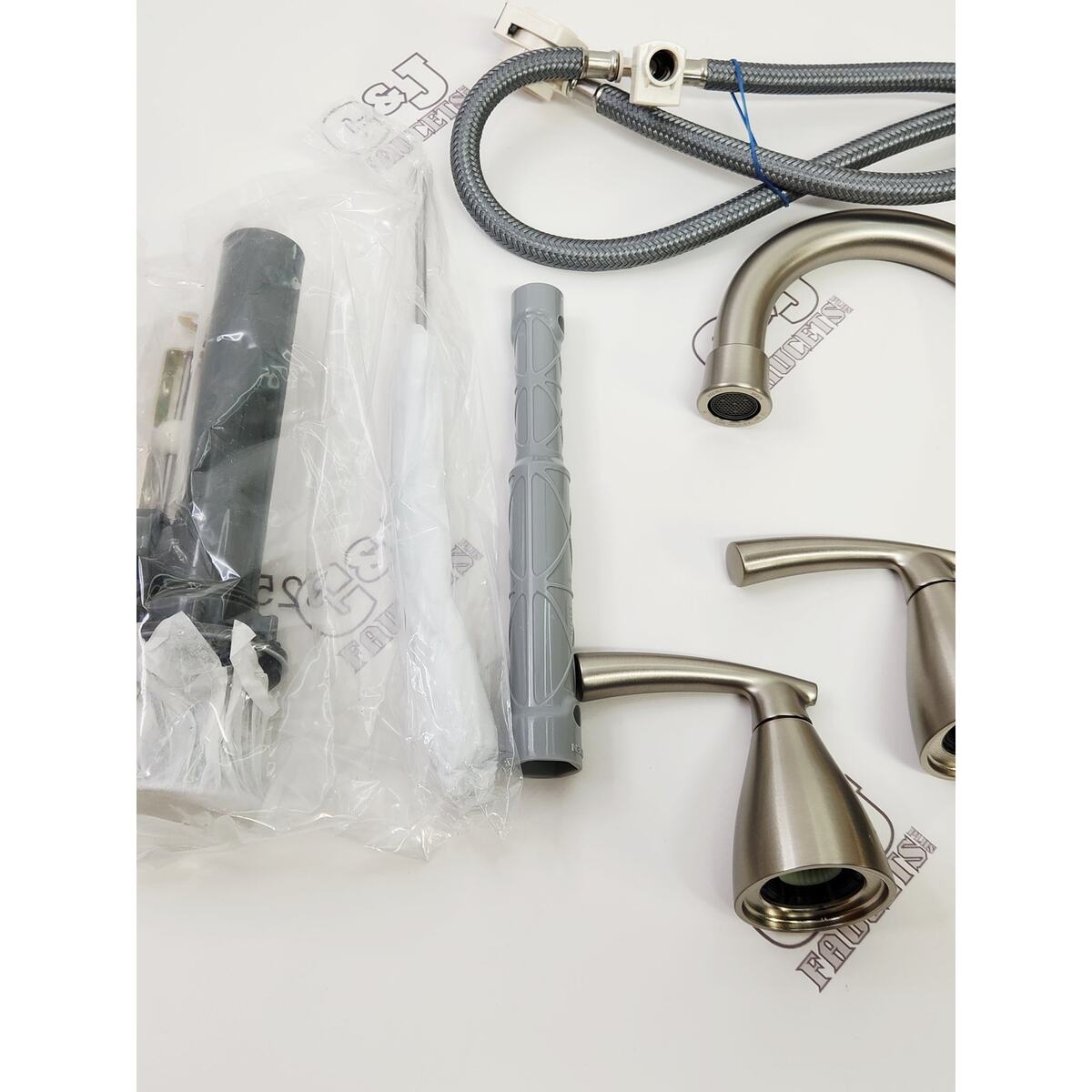 Faucet was missing the pullout hose and the cover of hot/cold indicator. Since it had already been installed without realizing the hose was missing, sending it back was not an option, nor was reinstalling the leaky Moen that it was replacing. Trip to Lowe's was necessary. The soap dispenser is plastic as well as the pullout nozzle. The hot/cold indicator faces away from the sink which is a design flaw. Otherwise, it is a nice looking faucet and functions well.