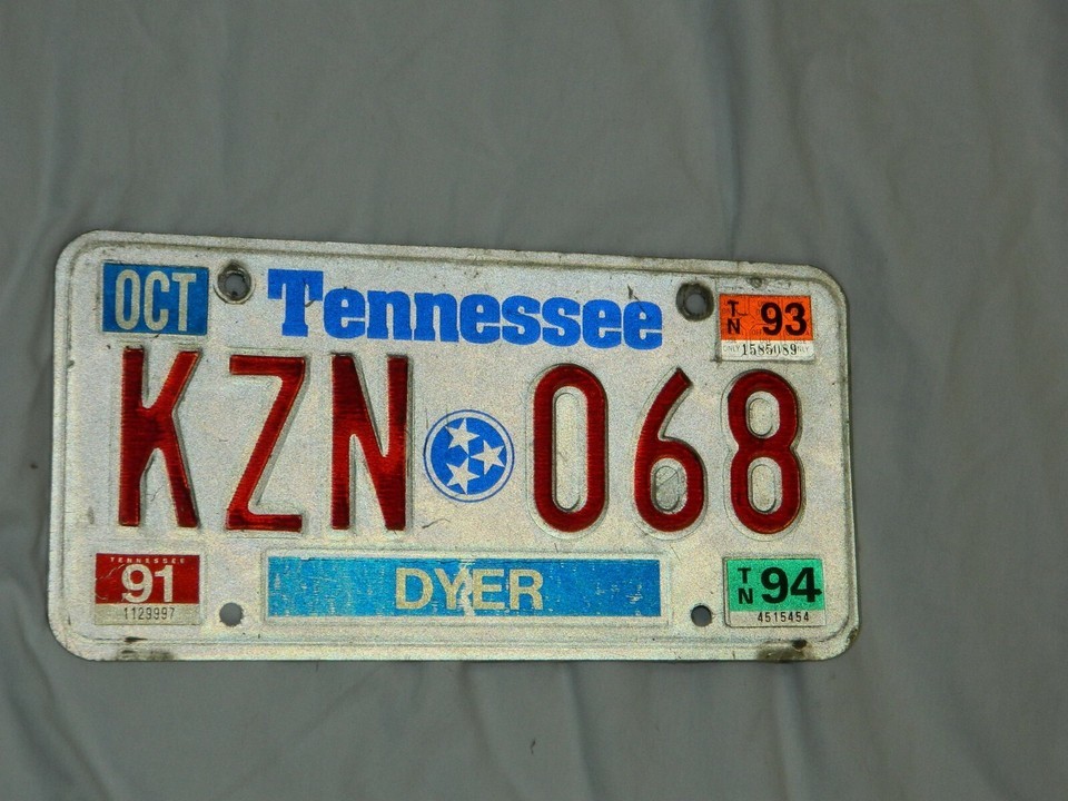 United States Tennessee 1994 Dyer County Passenger License Plate # KNZ-068