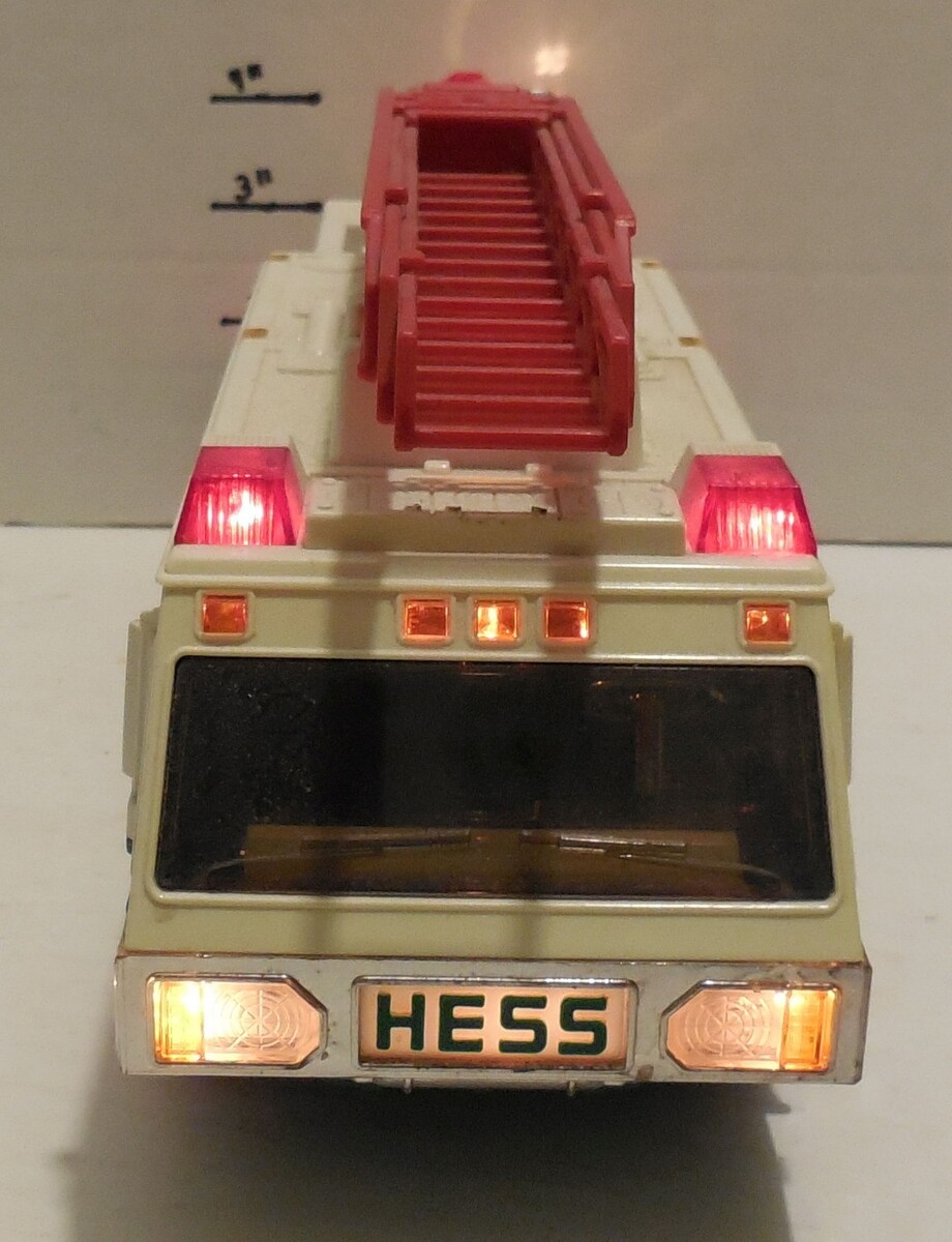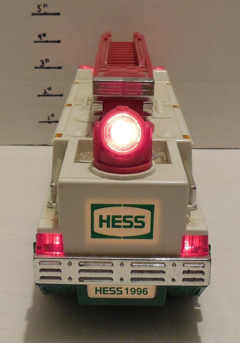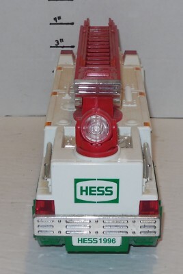 For Sale is a rare and hard to find 1996 Hess Gasoline Fire Truck with Lights and Sounds as pictured in good used condition. NO BOX, Inserts or Manual What you see is what you will receive if its not pictured its not included. Please see pictures provided for More Details. would make a wonderful addition to any Toy collection. Please ask Any and All Questions prior to purchasing. Fast Same or Next day shipping with Free Delivery Confirmation within the U.S. Payment Due within 7 days of purchase (if you need more time please let us know In advance) we love to combine shipping is always a Yes and Most of the time Additional Items Ship for free.