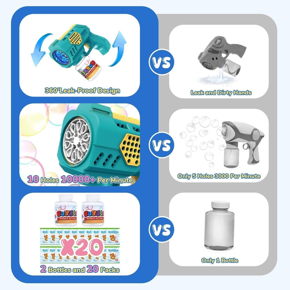 2 Pack Kids Bubble Guns - Fun LED Light Toys with Bubble Solution Included