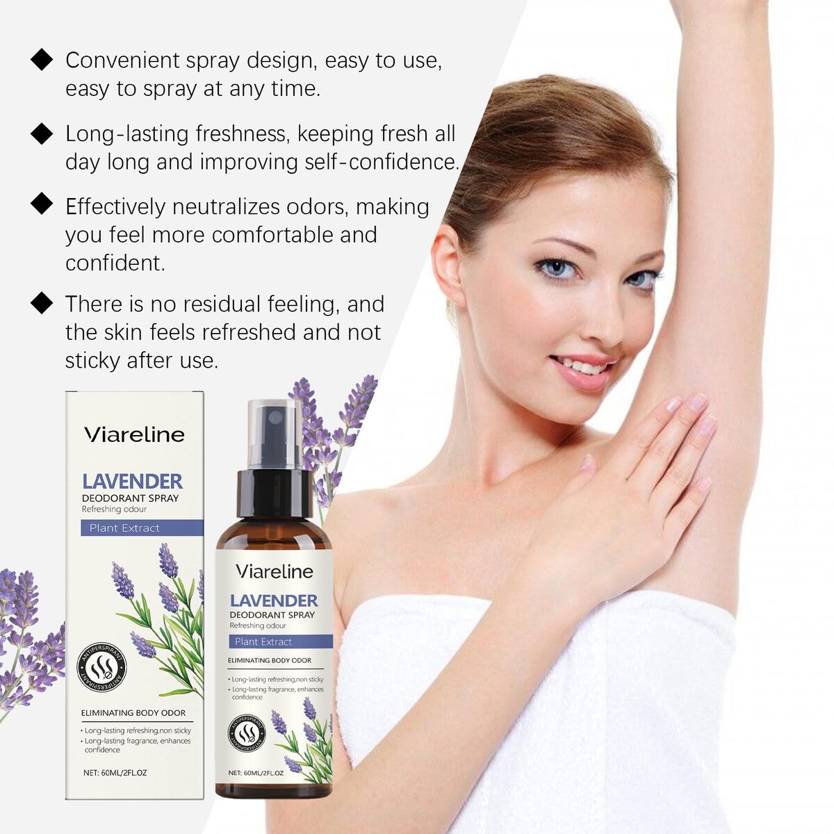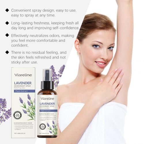 Viareline Lavender Deodorant Spray with Natural Plant Extracts, Long-Lasting Odo