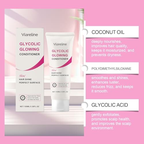 Short product description: Viareline Glycolic Glowing Conditioner is a lightweight conditioning formula designed to help leave hair feeling softer, smoother, and more manageable after every wash. Enriched with coconut oil, glycolic acid, and conditioning agents, it helps moisturize and smooth the hair surface while enhancing natural-looking shine. The creamy texture spreads easily through the hair and rinses clean without leaving a heavy or greasy feel. Suitable for regular use, this conditioner helps support a smooth, polished hair appearance for everyday hair care. Packaged in a convenient 100ml (3.38 fl oz) size for easy use at home or while traveling.