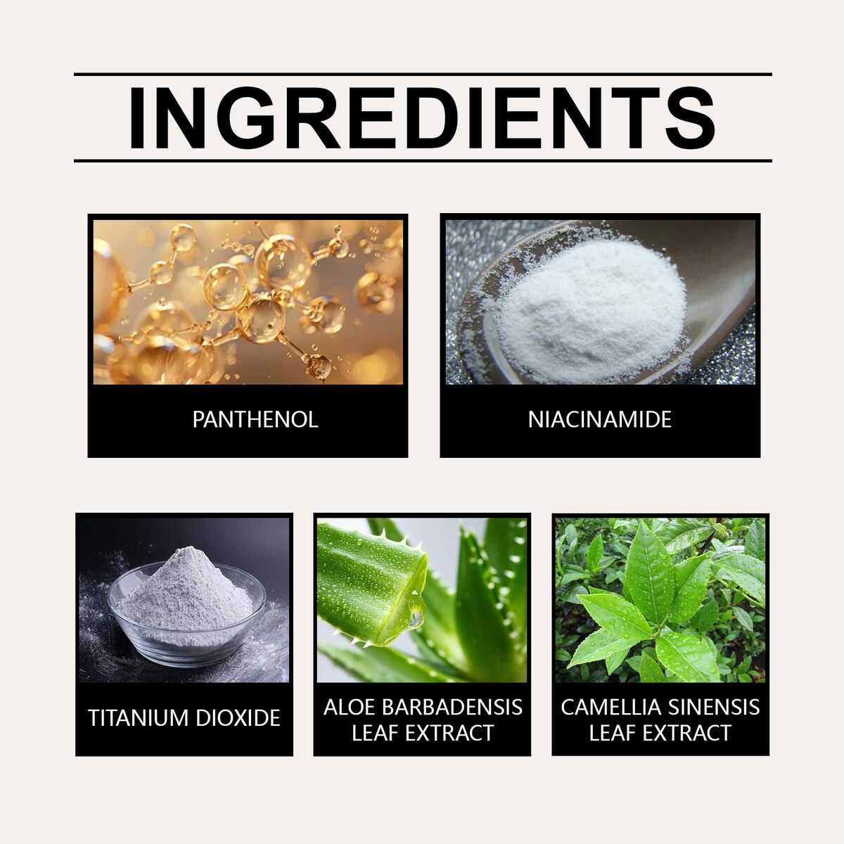 Niacinamide ? Commonly used in skincare formulations to support a brighter and more even-looking complexion. Aloe Leaf Extract ? Helps keep skin feeling calm and comfortable during daily sun exposure.