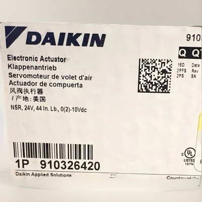 The Daikin 910326420 is a 24V electronic rotary damper actuator designed for industrial automation and motion control applications. With a brand known for quality and reliability, this unit offers precise control over rotary motion, making it an essential component for various systems that require accurate positioning and movement. The Daikin 910326420 is a single unit that ensures smooth and efficient operation, perfect for businesses seeking dependable automation solutions.