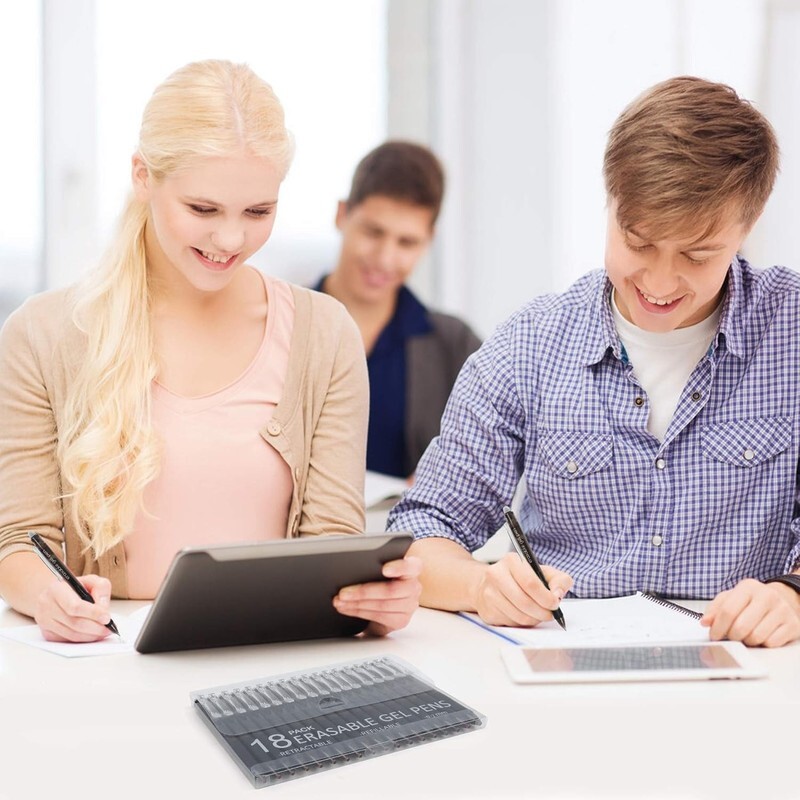 ?Top Quality?: 18 black erasable gel pens with 0.7mm fine tip, superior ink and soft rubber grip make the pens writing smoothly and using durable! Great pens for note taking, kid doodling, sketching, writing and getting creative in a fun and skilled way.