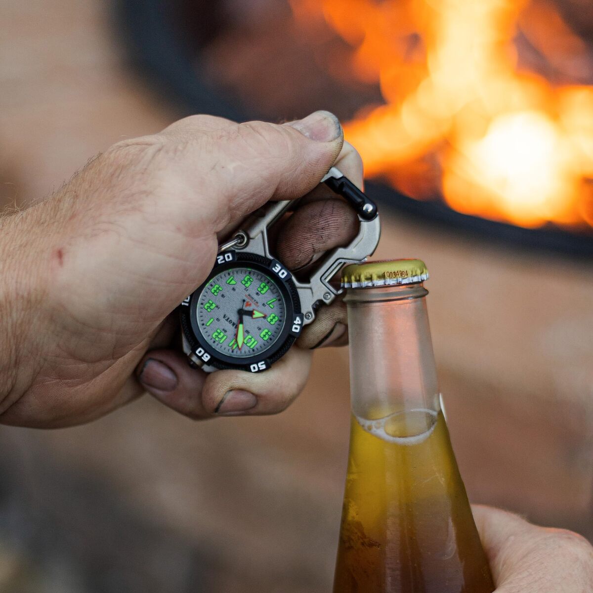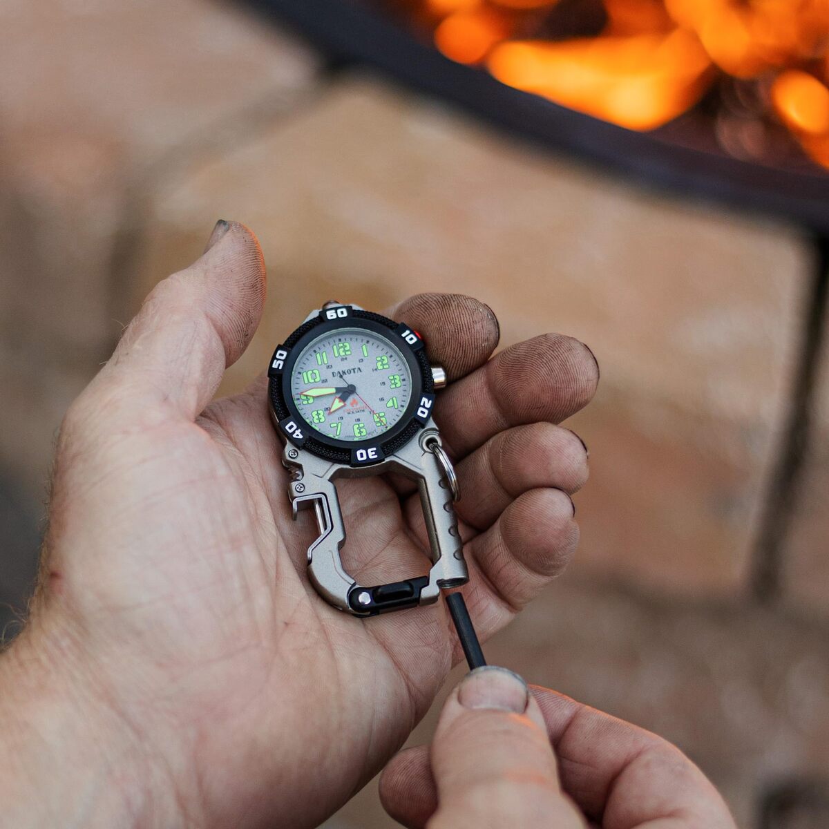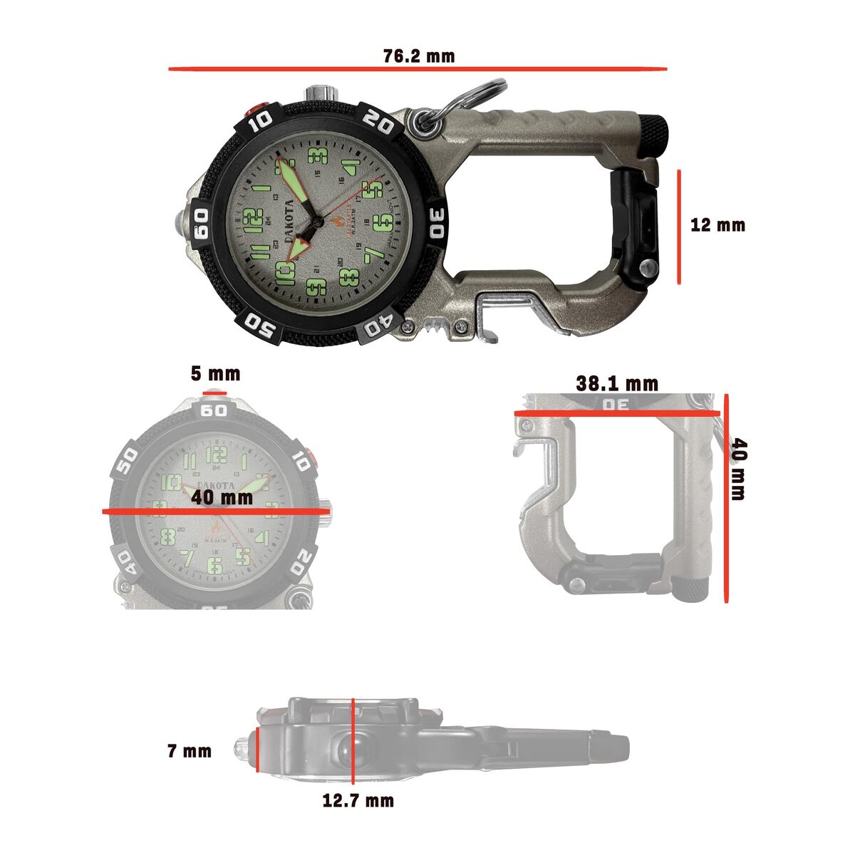 Dakota Flint Clip - Tactical Watch w/ LED, Fire Starter & Bottle Opener - Silver